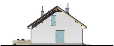 Graficzne opracowanie rzutów poglądowych widocznych na karcie projektu zostało wykonane przez Extradom.pl. Prezentowane przez Extradom.pl wizualizacje wykonane zostały przez autora projektu i należy poczytywać je jedynie za przykład i propozycję wykończenia, wizję architektoniczną autora projektu. Ostateczne wykończenie budynku może nastąpić na wiele sposobów. Szczegółowe rozwiązania zastosowane w oferowanej dokumentacji - w tym również ilość, lokalizacje i wygląd okien, drzwi, kominów - mogą w niewielkim stopniu różnić się od prezentowanej wizualizacji budynku.