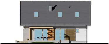 Graficzne opracowanie rzutów poglądowych widocznych na karcie projektu zostało wykonane przez Extradom.pl. Prezentowane przez Extradom.pl wizualizacje wykonane zostały przez autora projektu i należy poczytywać je jedynie za przykład i propozycję wykończenia, wizję architektoniczną autora projektu. Ostateczne wykończenie budynku może nastąpić na wiele sposobów. Szczegółowe rozwiązania zastosowane w oferowanej dokumentacji - w tym również ilość, lokalizacje i wygląd okien, drzwi, kominów - mogą w niewielkim stopniu różnić się od prezentowanej wizualizacji budynku.