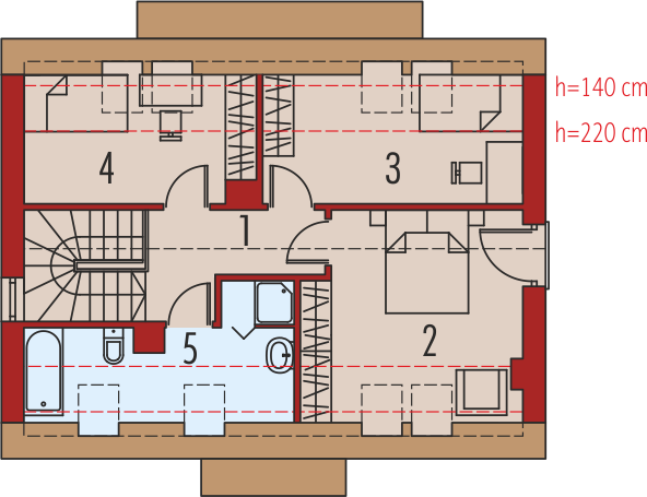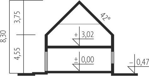 Fundamenty: ławy, bloczki betonowe 25 cm, ocieplenie styropian 15 cm Ściany zewnętrzne: murowane, dwuwarstwowe, beton komórkowy 24 cm. Ściany wewnętrzne: ściany nośne murowane, wapienno-piaskowe 24 cm, ścianki działowe w systemie suchej zabudowy Rigips 12 cm Podłoga na gruncie: płyta betonowa, ocieplenie styropian 15 cm. Strop: strop międzypiętrowy gęstożebrowy Teriva. Dach: konstrukcja drewniana, ocieplenie wełna mineralna 30 cm, dachówka płaska lub inna o podobnych parametrach. Ogrzewanie: kocioł gazowy, rozprowadzenie ciepła: grzejniki. Wentylacja: grawitacyjna : Elewacja: tynk cienkowarstwowy mineralny, okładzina drewniana. Stolarka: drewniana, PCV lub aluminiowa. Okna połaciowe: rozwiązania technologiczne firmy VELUX.