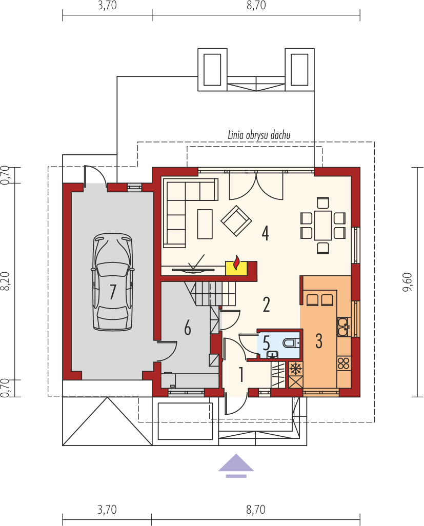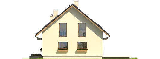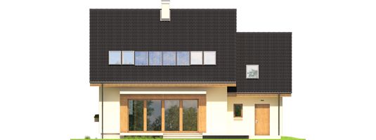 Graficzne opracowanie rzutów poglądowych widocznych na karcie projektu zostało wykonane przez Extradom.pl. Prezentowane przez Extradom.pl wizualizacje wykonane zostały przez autora projektu i należy poczytywać je jedynie za przykład i propozycję wykończenia, wizję architektoniczną autora projektu. Ostateczne wykończenie budynku może nastąpić na wiele sposobów. Szczegółowe rozwiązania zastosowane w oferowanej dokumentacji - w tym również ilość, lokalizacje i wygląd okien, drzwi, kominów - mogą w niewielkim stopniu różnić się od prezentowanej wizualizacji budynku.