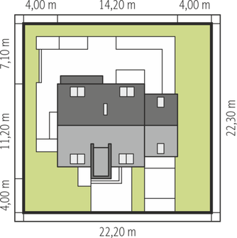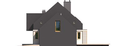 Graficzne opracowanie rzutów poglądowych widocznych na karcie projektu zostało wykonane przez Extradom.pl. Prezentowane przez Extradom.pl wizualizacje wykonane zostały przez autora projektu i należy poczytywać je jedynie za przykład i propozycję wykończenia, wizję architektoniczną autora projektu. Ostateczne wykończenie budynku może nastąpić na wiele sposobów. Szczegółowe rozwiązania zastosowane w oferowanej dokumentacji - w tym również ilość, lokalizacje i wygląd okien, drzwi, kominów - mogą w niewielkim stopniu różnić się od prezentowanej wizualizacji budynku.