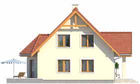 Ściany: 2-warstwowe - pustak ceramiczny + styropian. Stropy: żelbetowe, wylewane. Dach: gont bitumiczny, kąt nachylenia 45°. Ogrzewanie: gazowe.