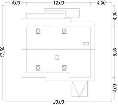 Graficzne opracowanie rzutów poglądowych widocznych na karcie projektu zostało wykonane przez Extradom.pl. Prezentowane przez Extradom.pl wizualizacje wykonane zostały przez autora projektu i należy poczytywać je jedynie za przykład i propozycję wykończenia, wizję architektoniczną autora projektu. Ostateczne wykończenie budynku może nastąpić na wiele sposobów. Szczegółowe rozwiązania zastosowane w oferowanej dokumentacji - w tym również ilość, lokalizacje i wygląd okien, drzwi, kominów - mogą w niewielkim stopniu różnić się od prezentowanej wizualizacji budynku.