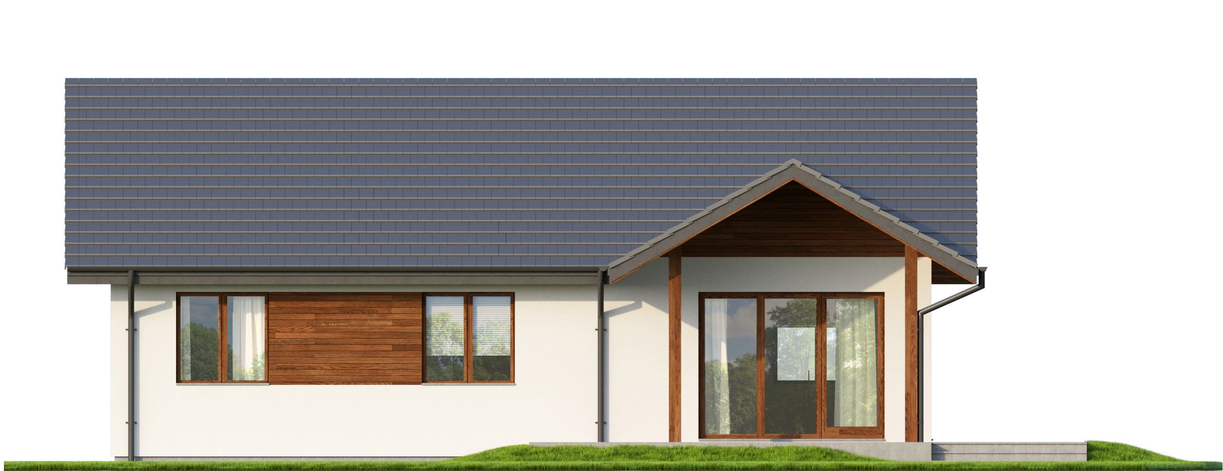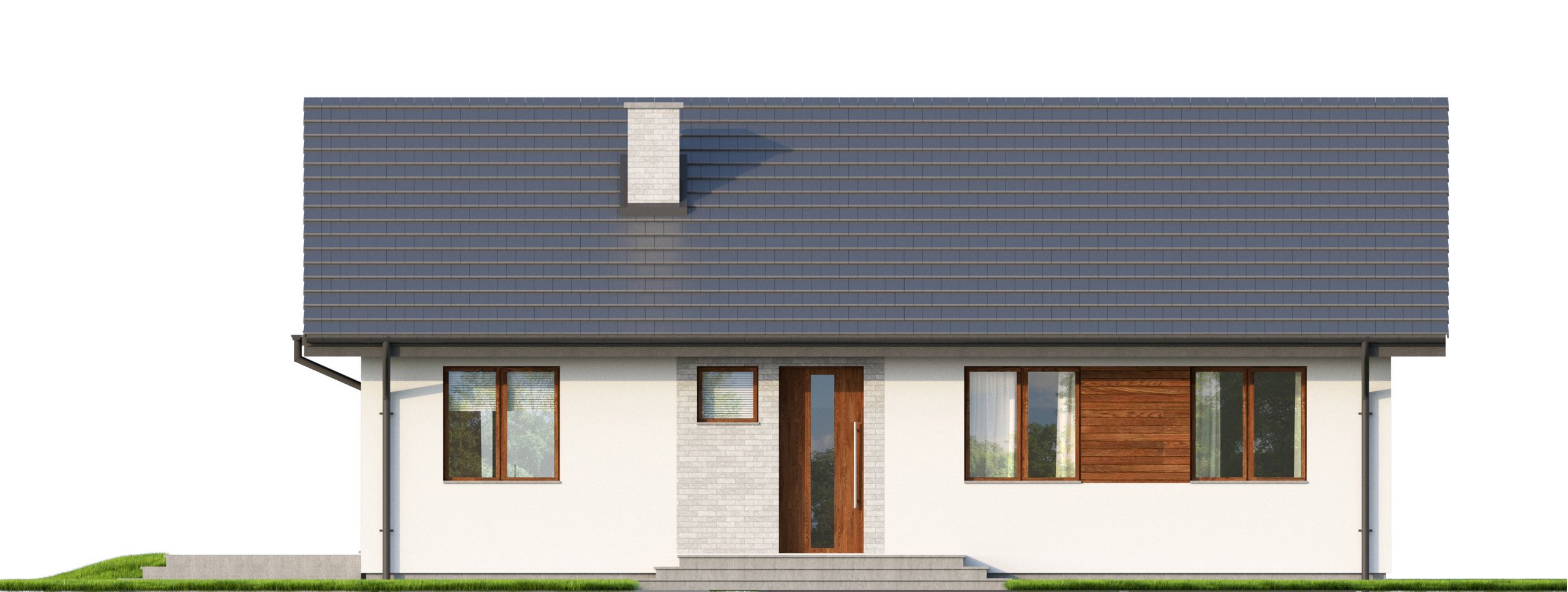 Graficzne opracowanie rzutów poglądowych widocznych na karcie projektu zostało wykonane przez Extradom.pl. Prezentowane przez Extradom.pl wizualizacje wykonane zostały przez autora projektu i należy poczytywać je jedynie za przykład i propozycję wykończenia, wizję architektoniczną autora projektu. Ostateczne wykończenie budynku może nastąpić na wiele sposobów. Szczegółowe rozwiązania zastosowane w oferowanej dokumentacji - w tym również ilość, lokalizacje i wygląd okien, drzwi, kominów - mogą w niewielkim stopniu różnić się od prezentowanej wizualizacji budynku.