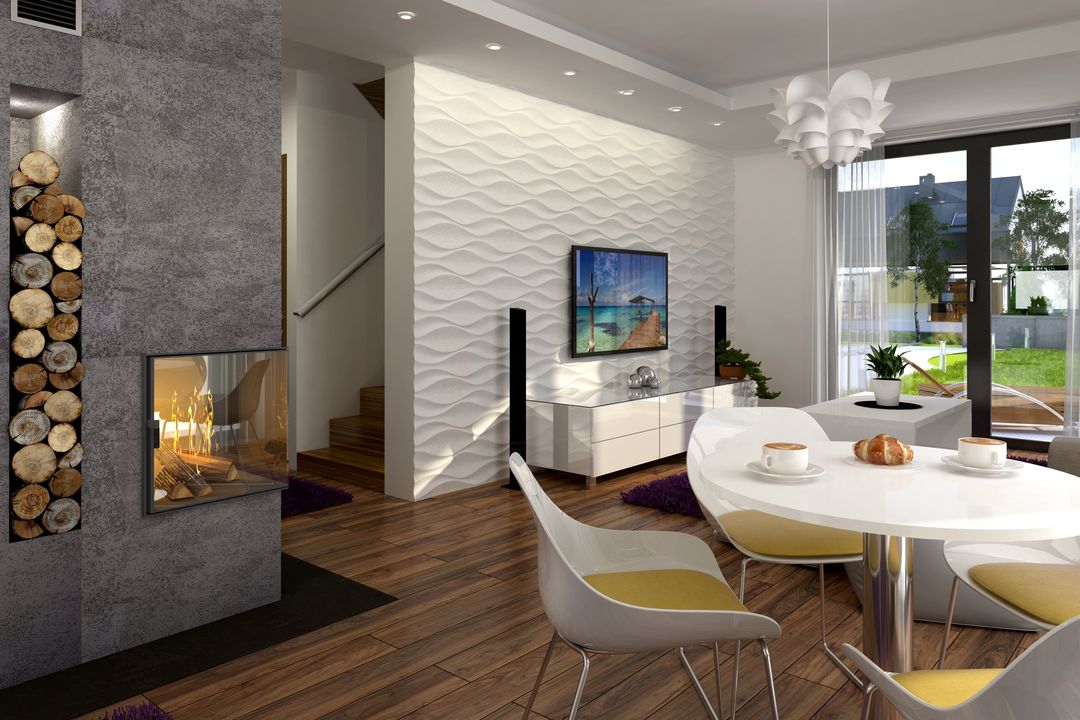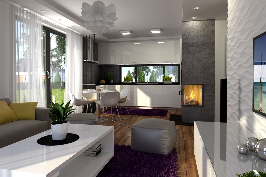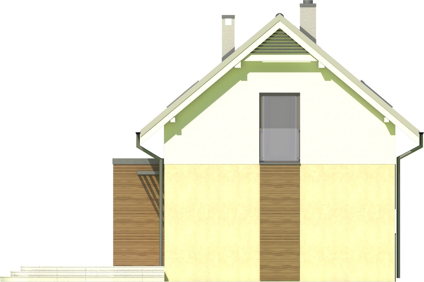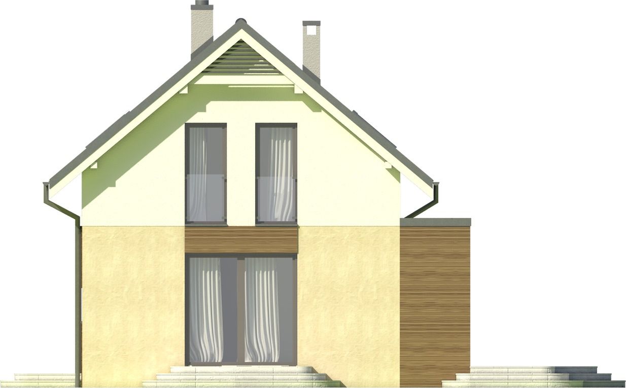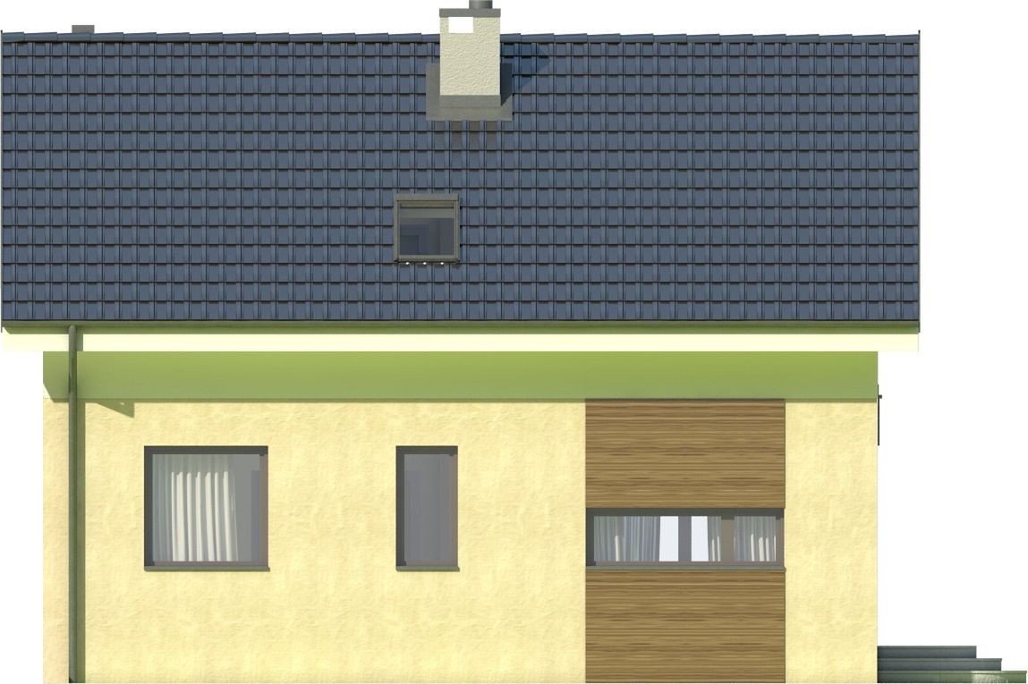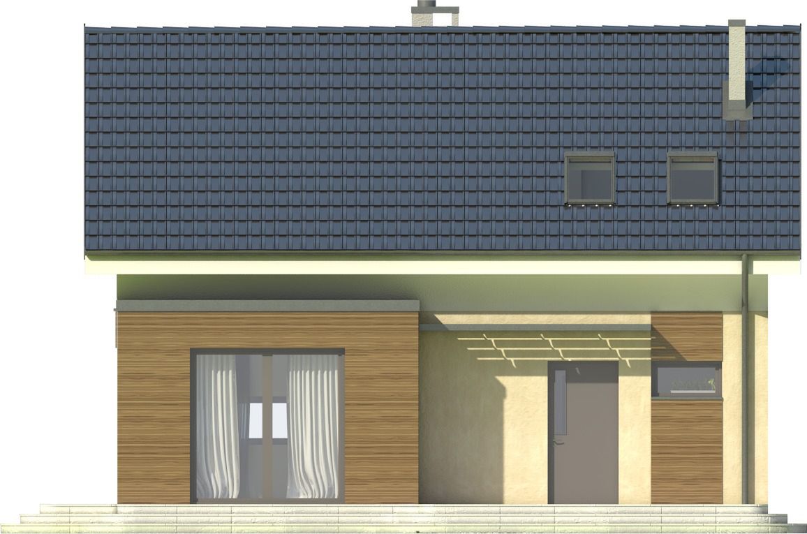 Graficzne opracowanie rzutów poglądowych widocznych na karcie projektu zostało wykonane przez Extradom.pl. Prezentowane przez Extradom.pl wizualizacje wykonane zostały przez autora projektu i należy poczytywać je jedynie za przykład i propozycję wykończenia, wizję architektoniczną autora projektu. Ostateczne wykończenie budynku może nastąpić na wiele sposobów. Szczegółowe rozwiązania zastosowane w oferowanej dokumentacji - w tym również ilość, lokalizacje i wygląd okien, drzwi, kominów - mogą w niewielkim stopniu różnić się od prezentowanej wizualizacji budynku.