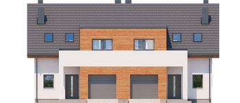 Graficzne opracowanie rzutów poglądowych widocznych na karcie projektu zostało wykonane przez Extradom.pl. Prezentowane przez Extradom.pl wizualizacje wykonane zostały przez autora projektu i należy poczytywać je jedynie za przykład i propozycję wykończenia, wizję architektoniczną autora projektu. Ostateczne wykończenie budynku może nastąpić na wiele sposobów. Szczegółowe rozwiązania zastosowane w oferowanej dokumentacji - w tym również ilość, lokalizacje i wygląd okien, drzwi, kominów - mogą w niewielkim stopniu różnić się od prezentowanej wizualizacji budynku.