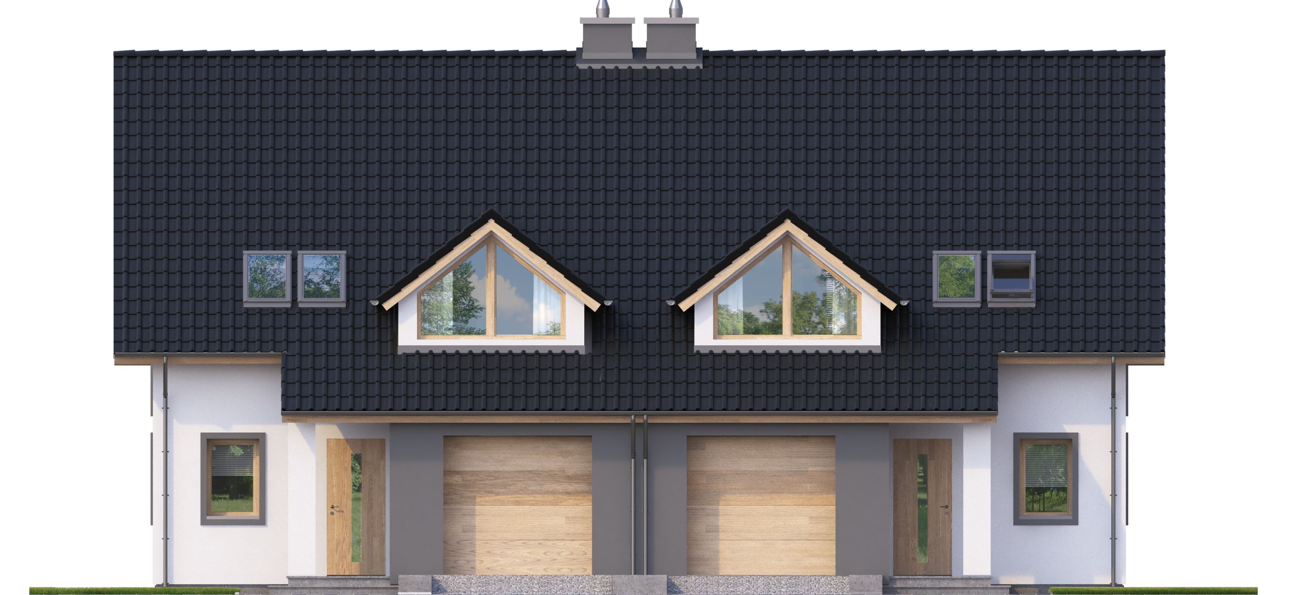 Projekt dostępny w konfiguracjach: bliźniak z segmentami lewym i prawym na osobnych dokumentacjach albo bliźniak na jednej dokumentacji albo jednorodzinny dwulokalowy.