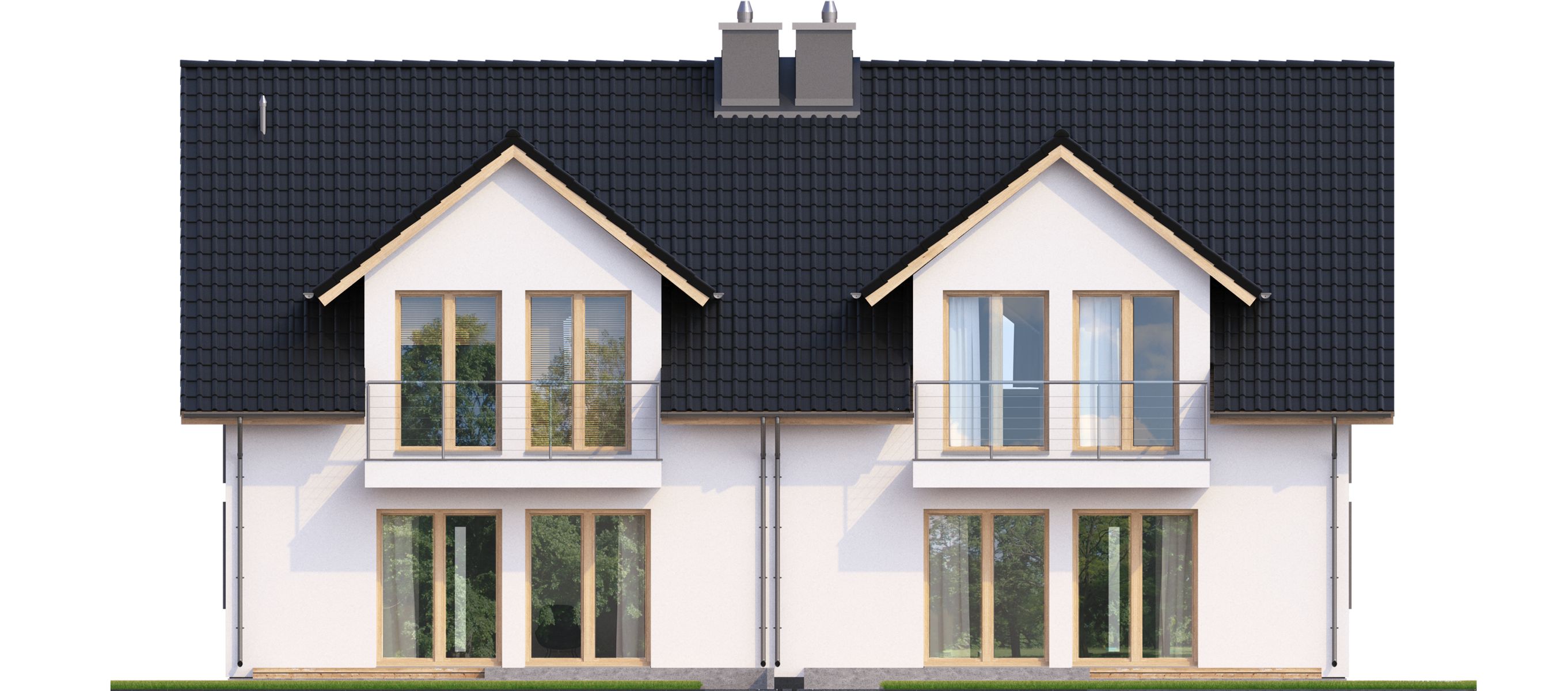Projekt dostępny w konfiguracjach: bliźniak z segmentami lewym i prawym na osobnych dokumentacjach albo bliźniak na jednej dokumentacji albo jednorodzinny dwulokalowy.