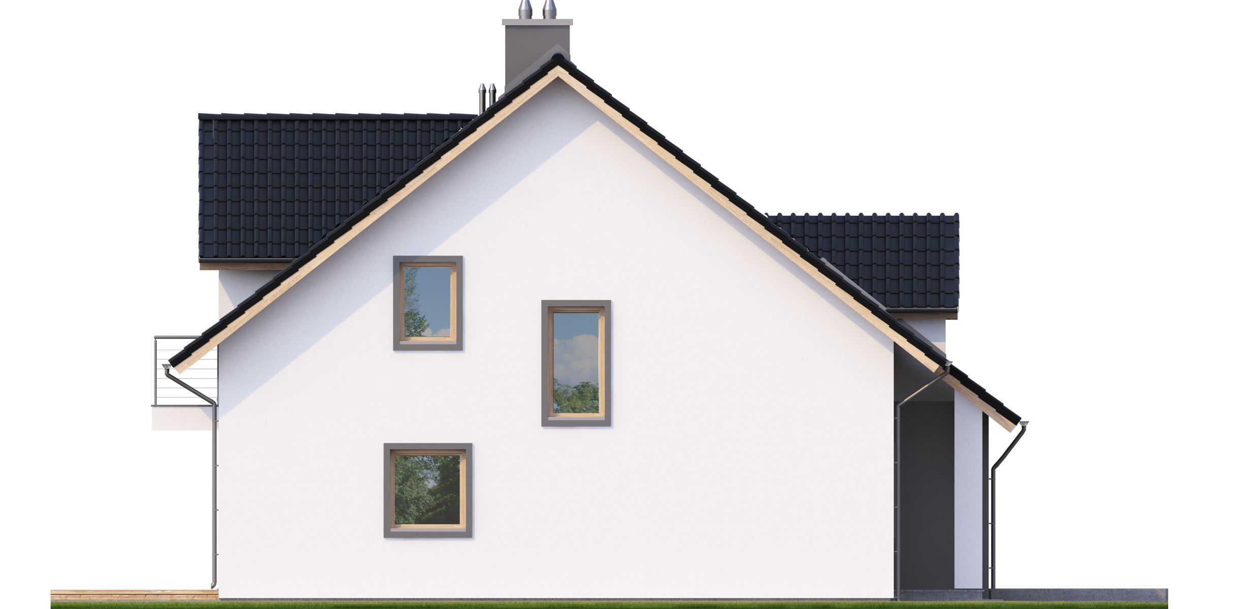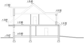 Graficzne opracowanie rzutów poglądowych widocznych na karcie projektu zostało wykonane przez Extradom.pl. Prezentowane przez Extradom.pl wizualizacje wykonane zostały przez autora projektu i należy poczytywać je jedynie za przykład i propozycję wykończenia, wizję architektoniczną autora projektu. Ostateczne wykończenie budynku może nastąpić na wiele sposobów. Szczegółowe rozwiązania zastosowane w oferowanej dokumentacji - w tym również ilość, lokalizacje i wygląd okien, drzwi, kominów - mogą w niewielkim stopniu różnić się od prezentowanej wizualizacji budynku.