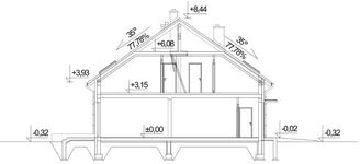 Ściany: bloczek z betonu komórkowego Ytong24 cm, wełna Isover TF PROFI, tynk. Strop: Teriva. Dach: dwuspadowy nachylnie 35', tradycyjna więźba, dachówka ceramiczna, okno dachowe VELUX. Ogrzewanie: gazowe. Wentylacja: grawitacyjna.