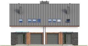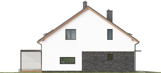 Graficzne opracowanie rzutów poglądowych widocznych na karcie projektu zostało wykonane przez Extradom.pl. Prezentowane przez Extradom.pl wizualizacje wykonane zostały przez autora projektu i należy poczytywać je jedynie za przykład i propozycję wykończenia, wizję architektoniczną autora projektu. Ostateczne wykończenie budynku może nastąpić na wiele sposobów. Szczegółowe rozwiązania zastosowane w oferowanej dokumentacji - w tym również ilość, lokalizacje i wygląd okien, drzwi, kominów - mogą w niewielkim stopniu różnić się od prezentowanej wizualizacji budynku.