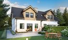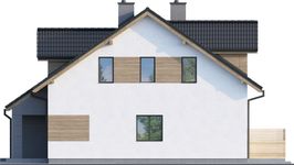 Graficzne opracowanie rzutów poglądowych widocznych na karcie projektu zostało wykonane przez Extradom.pl. Prezentowane przez Extradom.pl wizualizacje wykonane zostały przez autora projektu i należy poczytywać je jedynie za przykład i propozycję wykończenia, wizję architektoniczną autora projektu. Ostateczne wykończenie budynku może nastąpić na wiele sposobów. Szczegółowe rozwiązania zastosowane w oferowanej dokumentacji - w tym również ilość, lokalizacje i wygląd okien, drzwi, kominów - mogą w niewielkim stopniu różnić się od prezentowanej wizualizacji budynku.