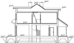 Ściany: bloczek z betonu komórkowego Ytong24 cm, wełna Isover TF PROFI, tynk. Strop: Teriva. Dach: dwuspadowy nachylnie 35', tradycyjna więźba,dachówka ceramiczna, okno dachowe VELUX. Ogrzewanie: gazowe. Wentylacja: grawitacyjna.