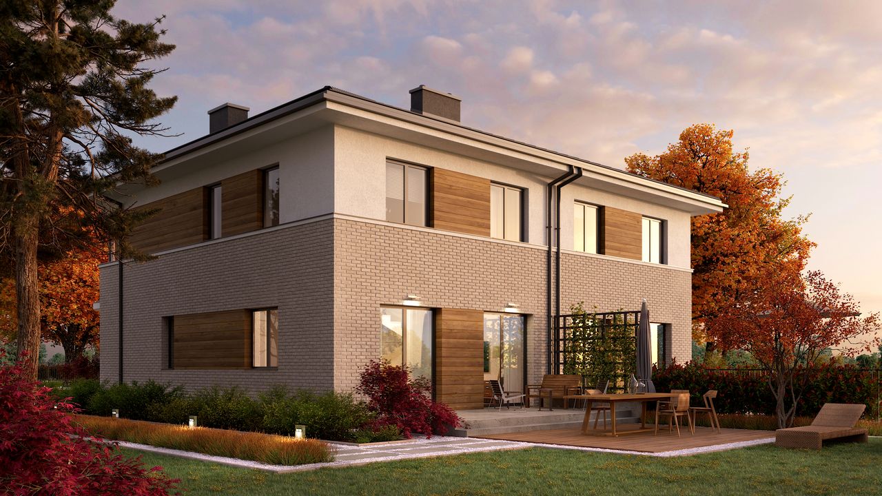 Projekt dostępny w konfiguracjach: bliźniak z segmentami lewym i prawym na osobnych dokumentacjach albo bliźniak na jednej dokumentacji albo jednorodzinny dwulokalowy.