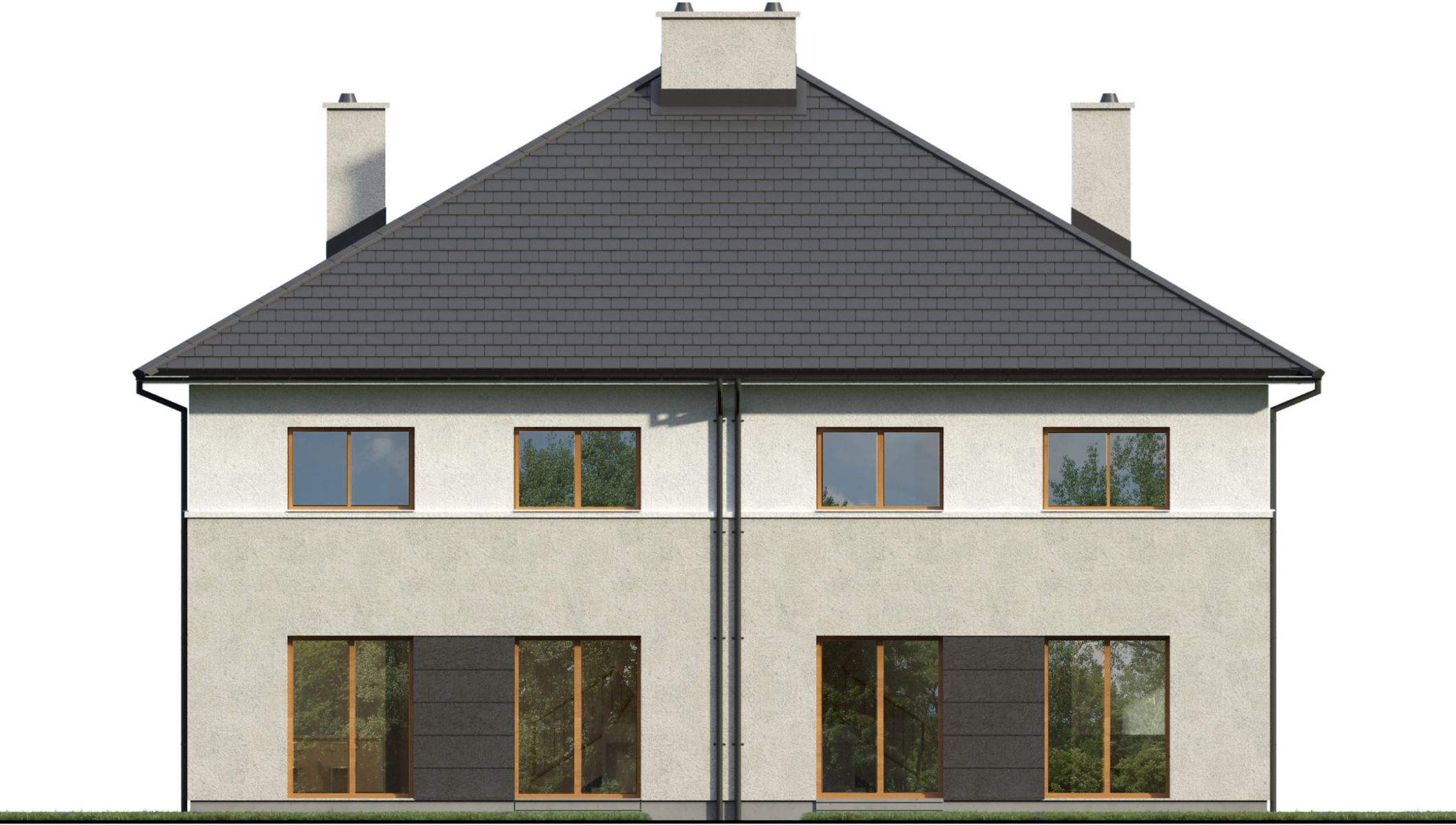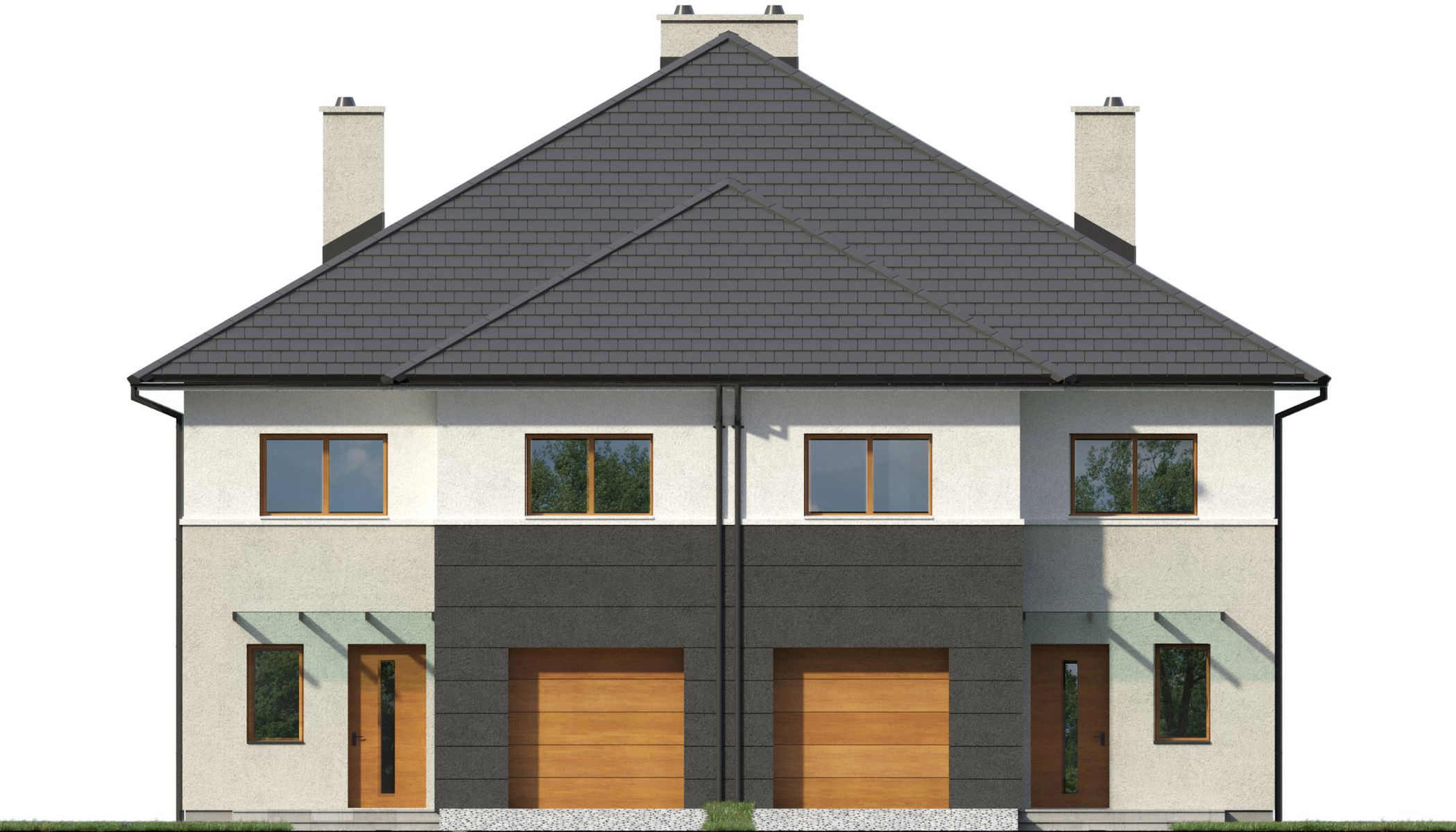 Projekt dostępny w konfiguracjach: bliźniak z segmentami lewym i prawym na osobnych dokumentacjach albo bliźniak na jednej dokumentacji albo jednorodzinny dwulokalowy.
