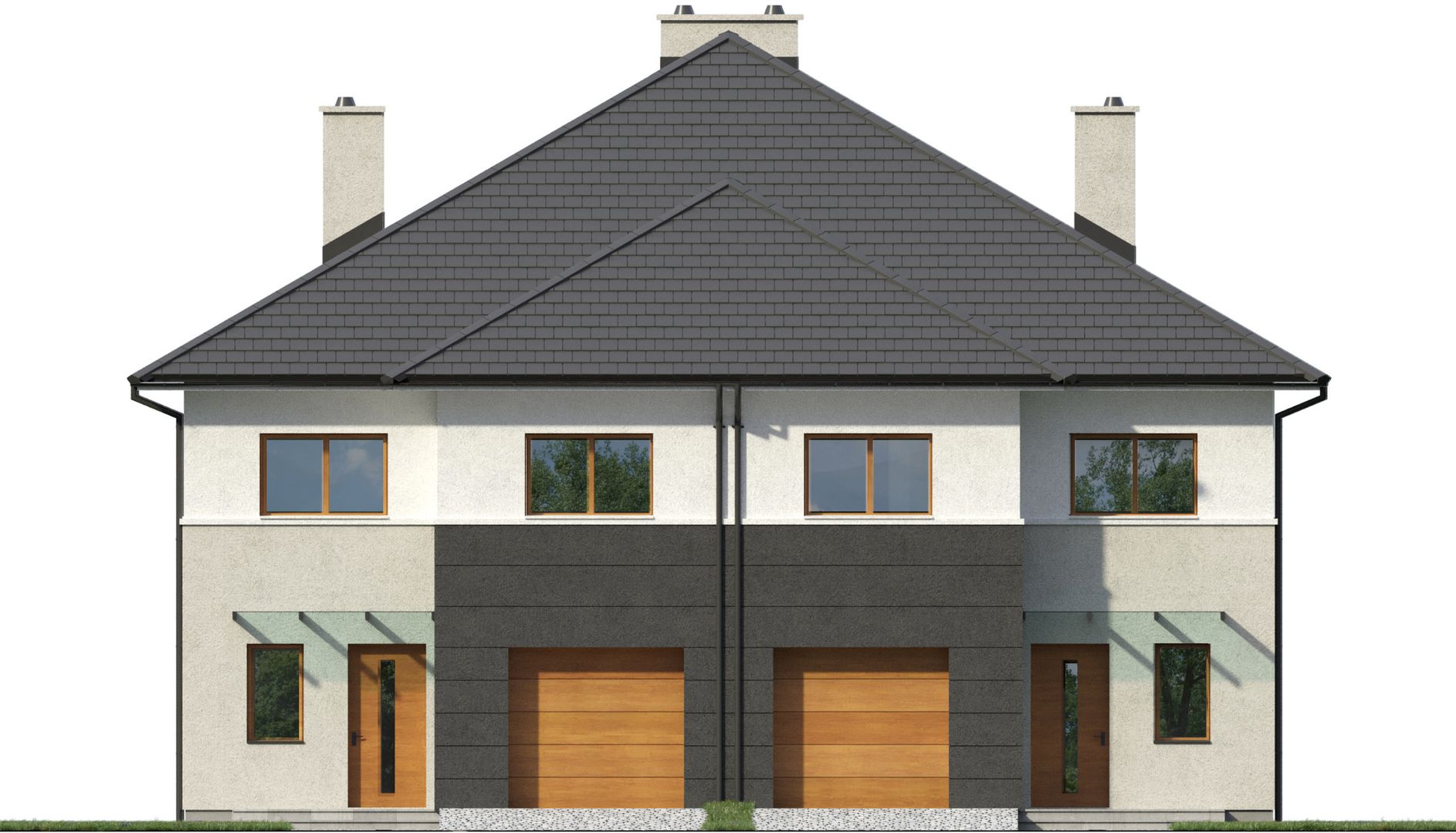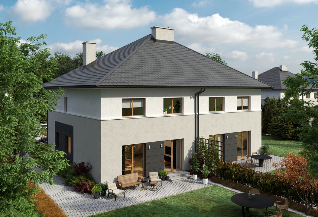 Projekt dostępny w konfiguracjach: bliźniak z segmentami lewym i prawym na osobnych dokumentacjach albo bliźniak na jednej dokumentacji albo jednorodzinny dwulokalowy.