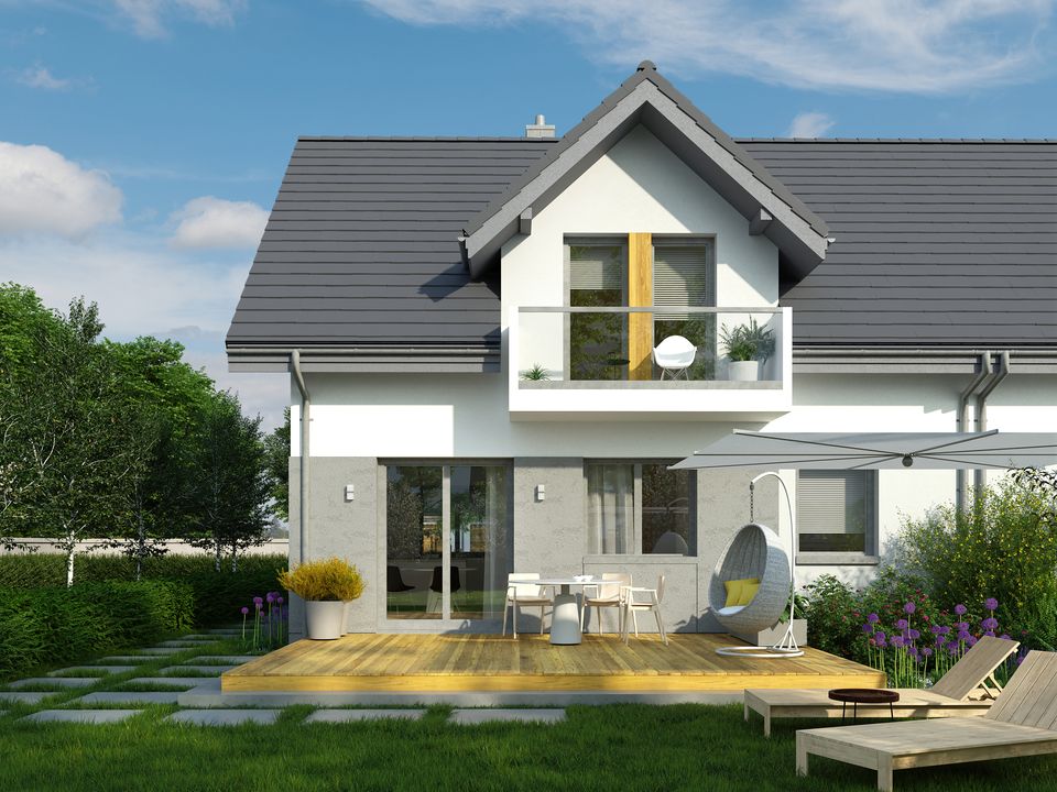 Projekt dostępny w konfiguracjach: bliźniak z segmentami lewym i prawym na osobnych dokumentacjach albo bliźniak na jednej dokumentacji albo jednorodzinny dwulokalowy.