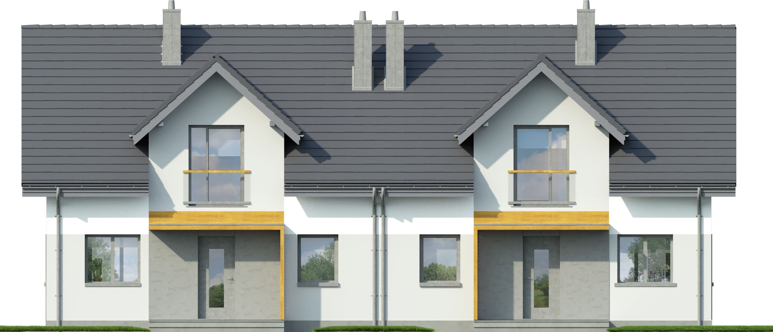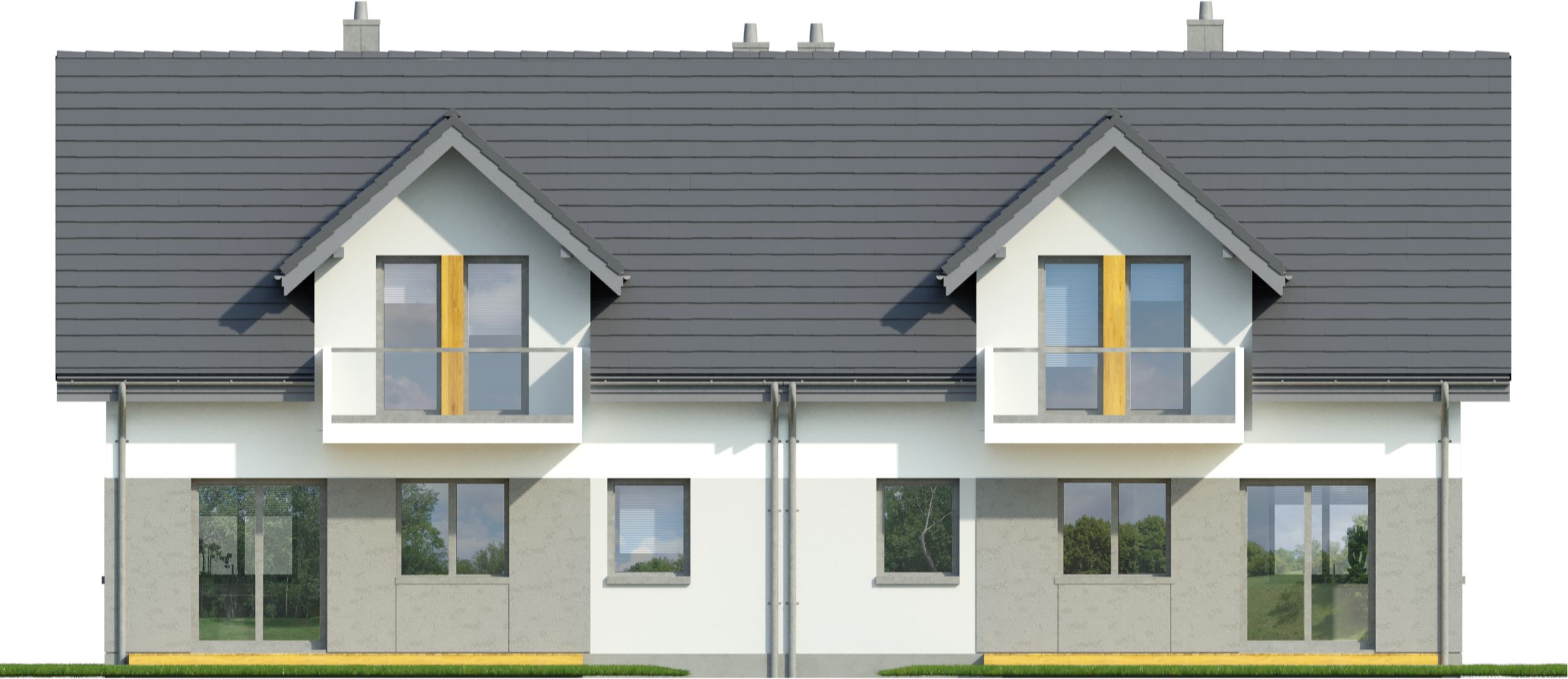 Projekt dostępny w konfiguracjach: bliźniak z segmentami lewym i prawym na osobnych dokumentacjach albo bliźniak na jednej dokumentacji albo jednorodzinny dwulokalowy.