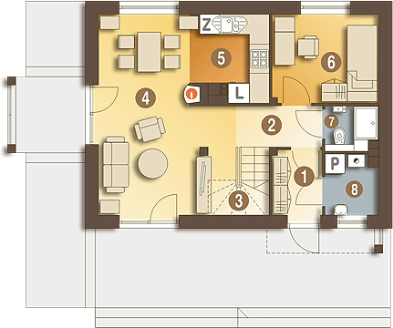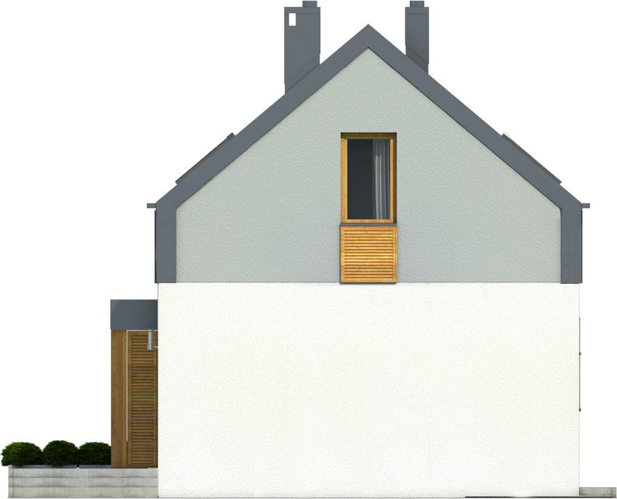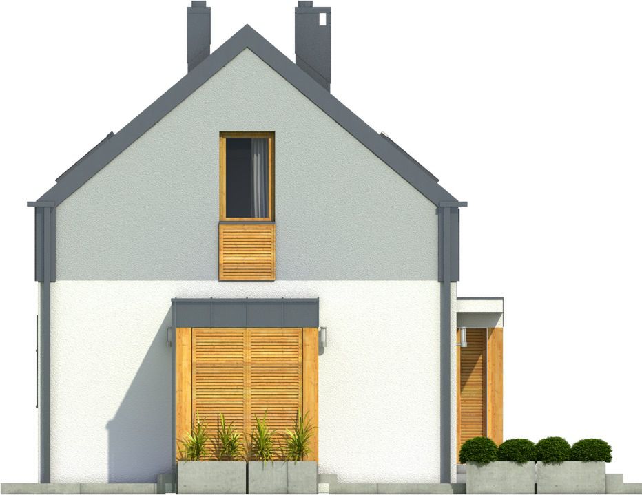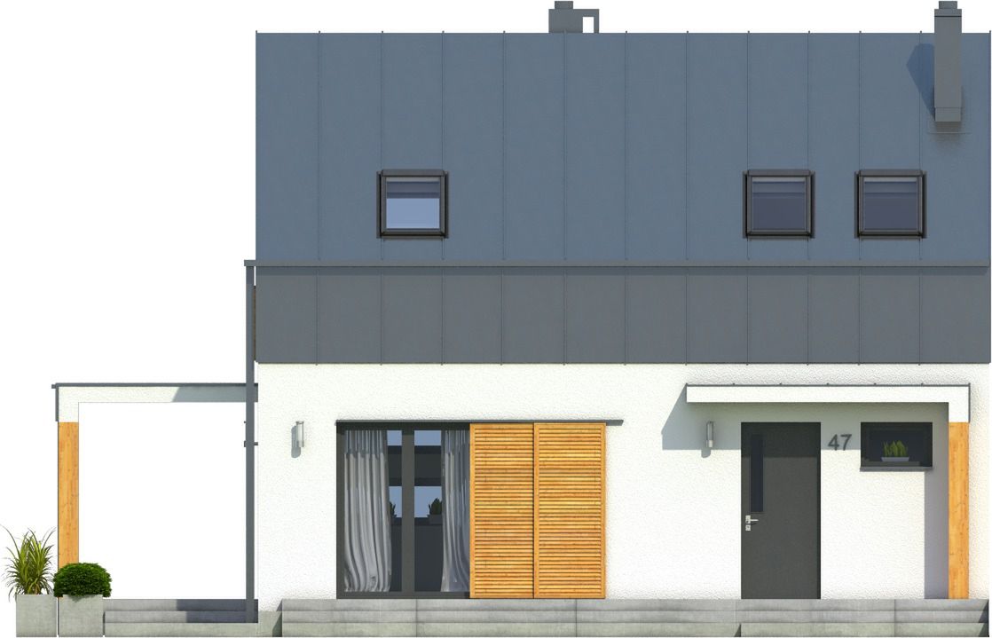 Graficzne opracowanie rzutów poglądowych widocznych na karcie projektu zostało wykonane przez Extradom.pl. Prezentowane przez Extradom.pl wizualizacje wykonane zostały przez autora projektu i należy poczytywać je jedynie za przykład i propozycję wykończenia, wizję architektoniczną autora projektu. Ostateczne wykończenie budynku może nastąpić na wiele sposobów. Szczegółowe rozwiązania zastosowane w oferowanej dokumentacji - w tym również ilość, lokalizacje i wygląd okien, drzwi, kominów - mogą w niewielkim stopniu różnić się od prezentowanej wizualizacji budynku.