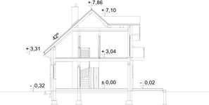 Graficzne opracowanie rzutów poglądowych widocznych na karcie projektu zostało wykonane przez Extradom.pl. Prezentowane przez Extradom.pl wizualizacje wykonane zostały przez autora projektu i należy poczytywać je jedynie za przykład i propozycję wykończenia, wizję architektoniczną autora projektu. Ostateczne wykończenie budynku może nastąpić na wiele sposobów. Szczegółowe rozwiązania zastosowane w oferowanej dokumentacji - w tym również ilość, lokalizacje i wygląd okien, drzwi, kominów - mogą w niewielkim stopniu różnić się od prezentowanej wizualizacji budynku.