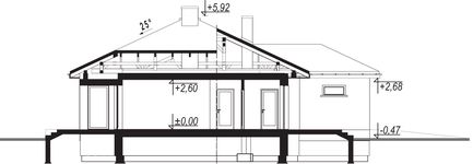 Graficzne opracowanie rzutów poglądowych widocznych na karcie projektu zostało wykonane przez Extradom.pl. Prezentowane przez Extradom.pl wizualizacje wykonane zostały przez autora projektu i należy poczytywać je jedynie za przykład i propozycję wykończenia, wizję architektoniczną autora projektu. Ostateczne wykończenie budynku może nastąpić na wiele sposobów. Szczegółowe rozwiązania zastosowane w oferowanej dokumentacji - w tym również ilość, lokalizacje i wygląd okien, drzwi, kominów - mogą w niewielkim stopniu różnić się od prezentowanej wizualizacji budynku.