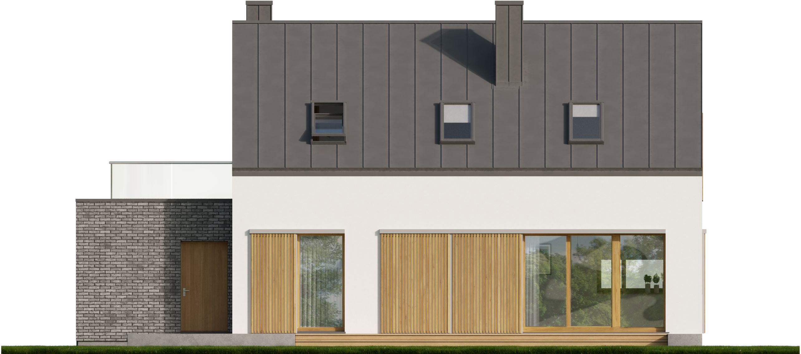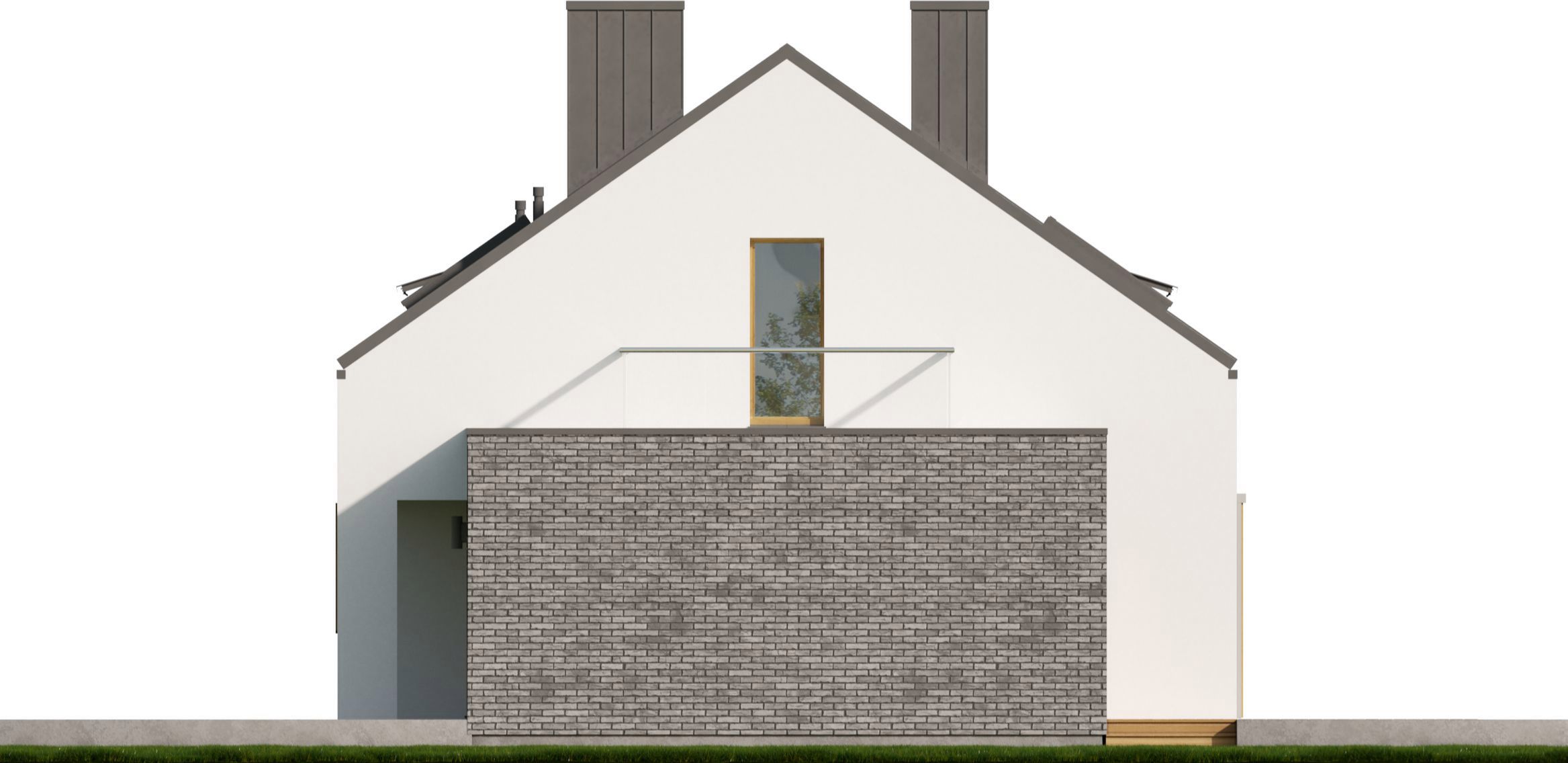 Graficzne opracowanie rzutów poglądowych widocznych na karcie projektu zostało wykonane przez Extradom.pl. Prezentowane przez Extradom.pl wizualizacje wykonane zostały przez autora projektu i należy poczytywać je jedynie za przykład i propozycję wykończenia, wizję architektoniczną autora projektu. Ostateczne wykończenie budynku może nastąpić na wiele sposobów. Szczegółowe rozwiązania zastosowane w oferowanej dokumentacji - w tym również ilość, lokalizacje i wygląd okien, drzwi, kominów - mogą w niewielkim stopniu różnić się od prezentowanej wizualizacji budynku.