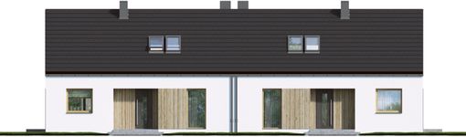 Graficzne opracowanie rzutów poglądowych widocznych na karcie projektu zostało wykonane przez Extradom.pl. Prezentowane przez Extradom.pl wizualizacje wykonane zostały przez autora projektu i należy poczytywać je jedynie za przykład i propozycję wykończenia, wizję architektoniczną autora projektu. Ostateczne wykończenie budynku może nastąpić na wiele sposobów. Szczegółowe rozwiązania zastosowane w oferowanej dokumentacji - w tym również ilość, lokalizacje i wygląd okien, drzwi, kominów - mogą w niewielkim stopniu różnić się od prezentowanej wizualizacji budynku.