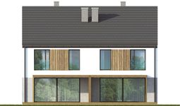 Graficzne opracowanie rzutów poglądowych widocznych na karcie projektu zostało wykonane przez Extradom.pl. Prezentowane przez Extradom.pl wizualizacje wykonane zostały przez autora projektu i należy poczytywać je jedynie za przykład i propozycję wykończenia, wizję architektoniczną autora projektu. Ostateczne wykończenie budynku może nastąpić na wiele sposobów. Szczegółowe rozwiązania zastosowane w oferowanej dokumentacji - w tym również ilość, lokalizacje i wygląd okien, drzwi, kominów - mogą w niewielkim stopniu różnić się od prezentowanej wizualizacji budynku.