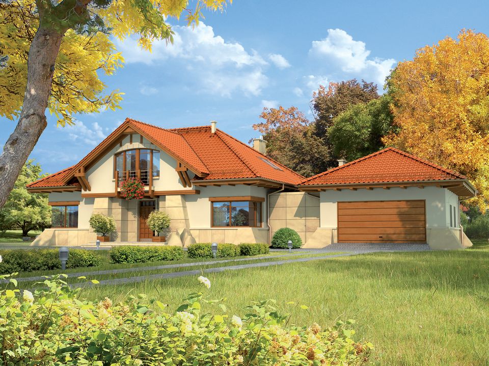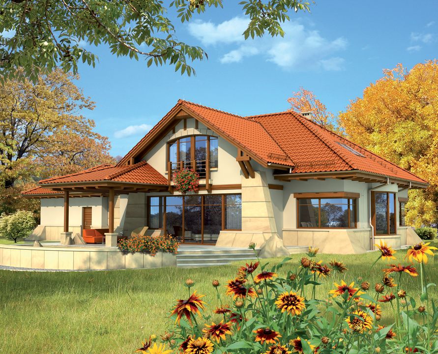 Odpowiadającego nam projektu domu szukaliśmy bardzo długo, gdyż jego znalezienie zajęło nam ponad rok. W tym czasie przeglądnęliśmy naprawdę wiele propozycji, jednak ostatecznie zdecydowaliśmy się na realizację projektu domu Edward II G2 WRC1726. Wybrany dom spodobał się nam zarówno ze względu na konstrukcję tworzącej go bryły, jak i funkcjonalność wnętrza. Ponadto od początku zależało nam na otwartej i przestronnej strefie dziennej o naprawdę sporych rozmiarach.Budowa przebiegła bardzo sprawnie, a fachowcy świetnie poradzili sobie na każdym z jej etapów. Cała inwestycja przebiegła w stosunkowo szybko, gdyż łącznie z wykonaniem prac wykończeniowych zajęła niecałe dwa lata. Do wymurowania ścian użyliśmy bloczków z betonu komórkowego H+H, a strop wykonaliśmy systemem Teriva. Współpracujący z nami kierownik budowy posiada uprawnienia pozwalające na wprowadzanie zmian konstrukcyjnych w projekcie. Umożliwiło to modyfikację więźby dachowej, dzięki czemu słupy podtrzymujące na poddaszu nie wystają w pokojach, a są schowane w ściany. Był to naprawdę dobry pomysł i szczerze polecam go innym Inwestorom. Dach przykryliśmy ceramiczną dachówką karpiówką. Muszę jednak przyznać, iż koszty naszej inwestycji przekroczyły oszacowane przez architekta, dlatego uważam iż realizując projekt domu Edward II G2 WRC1726 bezpieczniej będzie wziąć pod uwagę wyższą kwotę w stosunku do sugerowanej.Zewnętrzną izolację ścian tworzy 20 cm warstwa grafitowego styropianu, o najlepszym dostępnym na polskim rynku współczynniku przewodzenia ciepła (λ). Dom ogrzewamy za pomocą pompy ciepła. Trudno jednoznacznie ocenić mi faktyczne koszty samego ogrzewania, ponieważ rachunki za prąd jakie otrzymujemy to koszty generowane zarówno przez pompę, światło jak i wszystkie elektroniczne sprzęty wraz z kuchenką elektryczną. Po rachunkach za 4 zimowe miesiące szacujemy jednak, że łączne roczne koszty za zużycie prądu wyniosą w naszym przypadku ok. 6-7 tys. zł.Projekt domu Edward II G2 WRC1726 przewiduje garaż, jednak my postanowiliśmy zmienić jego funkcję - powierzchnię garażu przeznaczyliśmy na zrobienie dużego pokoju do gier i zabaw. Nieco poszerzyliśmy pomieszczenie gospodarcze między nim a częścią mieszkalną, dzięki czemu udało nam się wygospodarować w tym miejscu korytarz, łazienkę i pralnię. Oprócz tego, łazienkę uwzględnioną na poddaszu przedzieliliśmy na pół tworząc dwie mniejsze. Jedna z nich jest naszą prywatną, a wejście do niej możliwe jest jedynie od strony sypialni. Druga zaś, z wejściem od korytarza, dostępna jest dla wszystkich domowników. Innych zmian nie wprowadziałem, aczkolwiek obecnie z pewnością pomyślałbym nad podwyższeniem ścianki kolankowej o wysokość ok. 0,5 m. Myślę, że przyszli Inwestorzy również mogą rozważyć takie rozwiązanie, gdyż pozwoli to na uzyskanie bardziej przestronnego poddasza.Jestem zadowolony z wyboru projektu domu parterowego z poddaszem użytkowym Edward II G2 WRC1726. Uwzględniony w nim układ pomieszczeń został dobrze przemyślany, a wprowadzenie kilku zmian w całości dopasowało nowy dom do wszystkich naszych preferencji. Pozdrawiam.