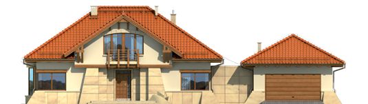 Graficzne opracowanie rzutów poglądowych widocznych na karcie projektu zostało wykonane przez Extradom.pl. Prezentowane przez Extradom.pl wizualizacje wykonane zostały przez autora projektu i należy poczytywać je jedynie za przykład i propozycję wykończenia, wizję architektoniczną autora projektu. Ostateczne wykończenie budynku może nastąpić na wiele sposobów. Szczegółowe rozwiązania zastosowane w oferowanej dokumentacji - w tym również ilość, lokalizacje i wygląd okien, drzwi, kominów - mogą w niewielkim stopniu różnić się od prezentowanej wizualizacji budynku.