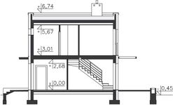 Fundamenty - rozwiązanie o podwyższonej izolacji termicznej. Ściany zewnętrzne - Bloczek silikatowy 24 cm + styropian 20 cm. Dach - stropodach gęstożebrowy. Ogrzewanie - c.o. grzejnikowe + c.w.u. - kocioł gazowy. Wentylacja - rekuperacja.