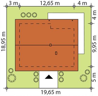 Graficzne opracowanie rzutów poglądowych widocznych na karcie projektu zostało wykonane przez Extradom.pl. Prezentowane przez Extradom.pl wizualizacje wykonane zostały przez autora projektu i należy poczytywać je jedynie za przykład i propozycję wykończenia, wizję architektoniczną autora projektu. Ostateczne wykończenie budynku może nastąpić na wiele sposobów. Szczegółowe rozwiązania zastosowane w oferowanej dokumentacji - w tym również ilość, lokalizacje i wygląd okien, drzwi, kominów - mogą w niewielkim stopniu różnić się od prezentowanej wizualizacji budynku.
