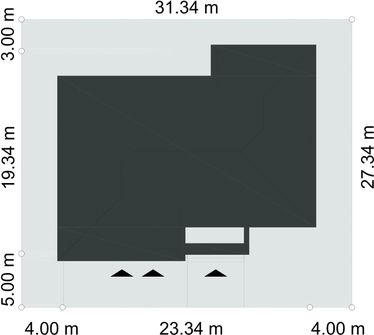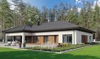 Graficzne opracowanie rzutów poglądowych widocznych na karcie projektu zostało wykonane przez Extradom.pl. Prezentowane przez Extradom.pl wizualizacje wykonane zostały przez autora projektu i należy poczytywać je jedynie za przykład i propozycję wykończenia, wizję architektoniczną autora projektu. Ostateczne wykończenie budynku może nastąpić na wiele sposobów. Szczegółowe rozwiązania zastosowane w oferowanej dokumentacji - w tym również ilość, lokalizacje i wygląd okien, drzwi, kominów - mogą w niewielkim stopniu różnić się od prezentowanej wizualizacji budynku.