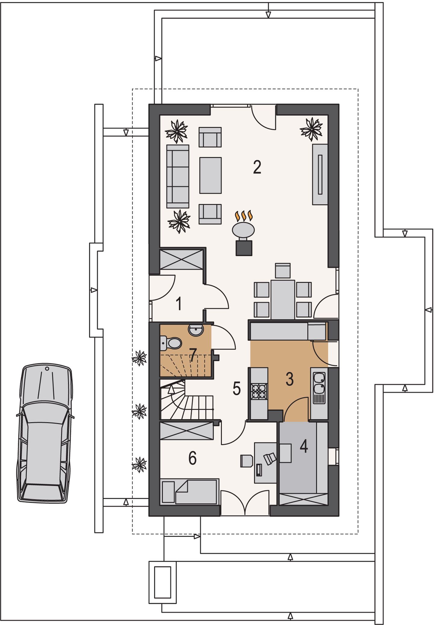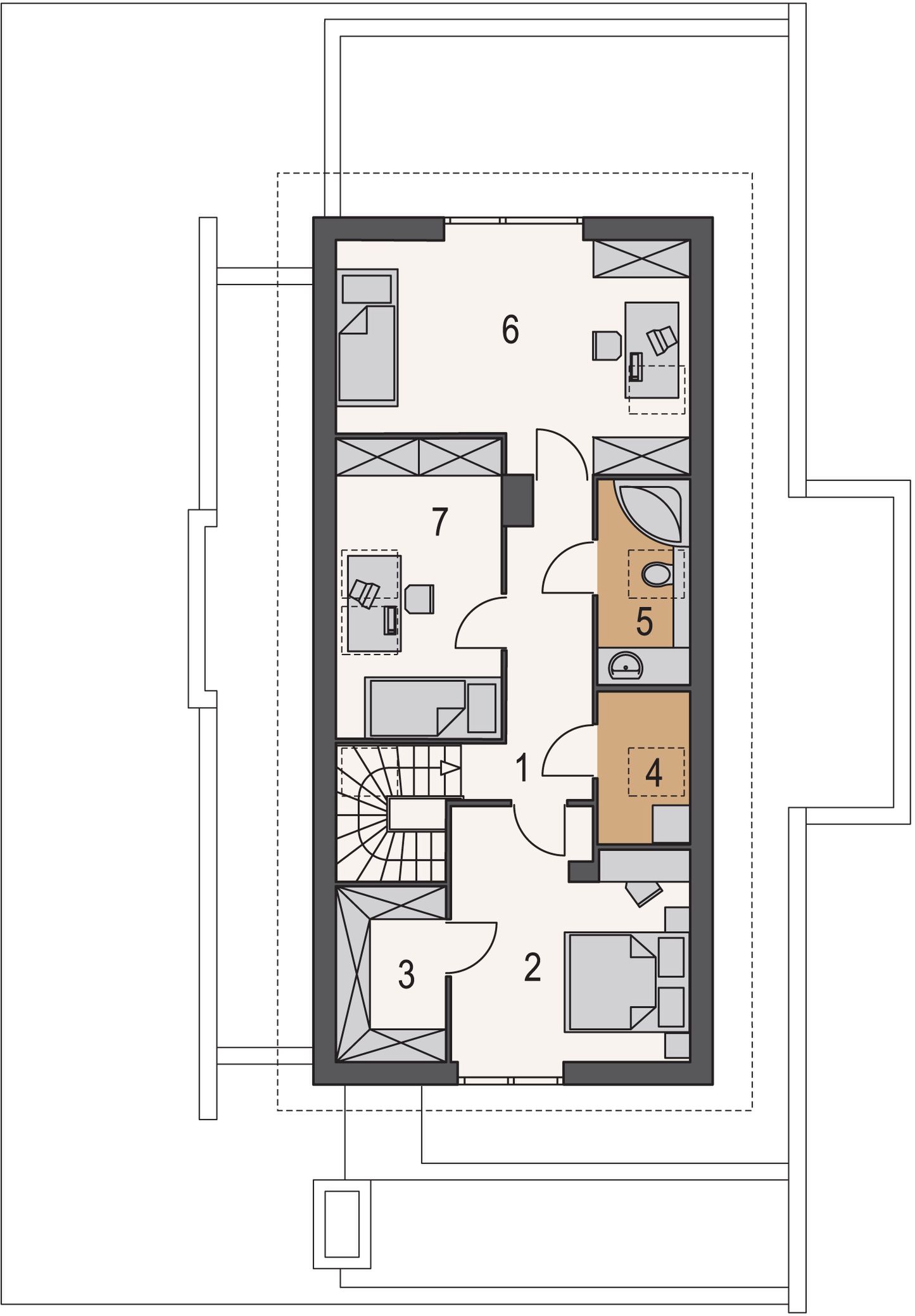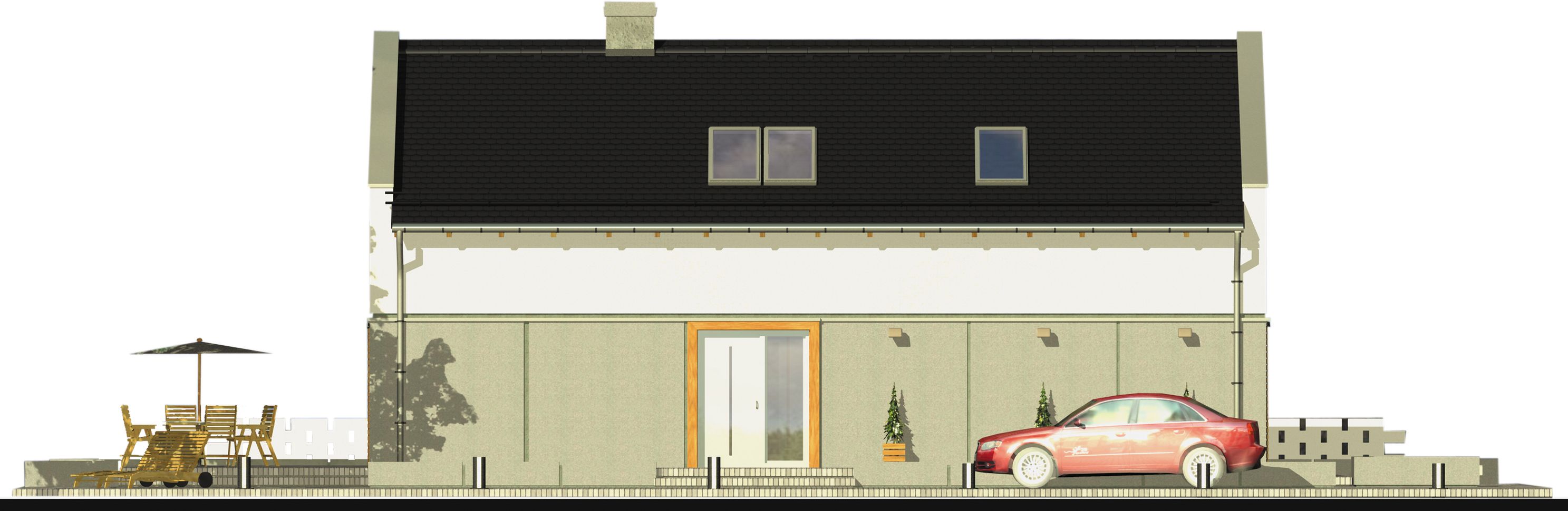 Graficzne opracowanie rzutów poglądowych widocznych na karcie projektu zostało wykonane przez Extradom.pl. Prezentowane przez Extradom.pl wizualizacje wykonane zostały przez autora projektu i należy poczytywać je jedynie za przykład i propozycję wykończenia, wizję architektoniczną autora projektu. Ostateczne wykończenie budynku może nastąpić na wiele sposobów. Szczegółowe rozwiązania zastosowane w oferowanej dokumentacji - w tym również ilość, lokalizacje i wygląd okien, drzwi, kominów - mogą w niewielkim stopniu różnić się od prezentowanej wizualizacji budynku.