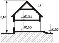 Ściany: 2-warstwowe - pustak ceramiczny + styropian. Stropy: żelbetowe, wylewane. Dach: dachówka ceramiczna CREATON, kąt nachylenia 45°. Ogrzewanie: gazowe.