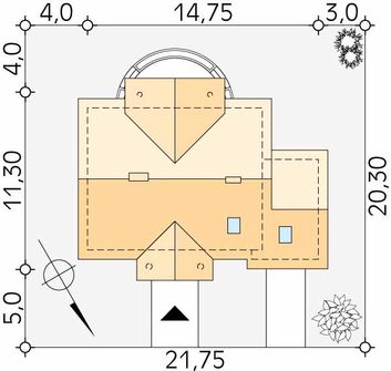 Graficzne opracowanie rzutów poglądowych widocznych na karcie projektu zostało wykonane przez Extradom.pl. Prezentowane przez Extradom.pl wizualizacje wykonane zostały przez autora projektu i należy poczytywać je jedynie za przykład i propozycję wykończenia, wizję architektoniczną autora projektu. Ostateczne wykończenie budynku może nastąpić na wiele sposobów. Szczegółowe rozwiązania zastosowane w oferowanej dokumentacji - w tym również ilość, lokalizacje i wygląd okien, drzwi, kominów - mogą w niewielkim stopniu różnić się od prezentowanej wizualizacji budynku.