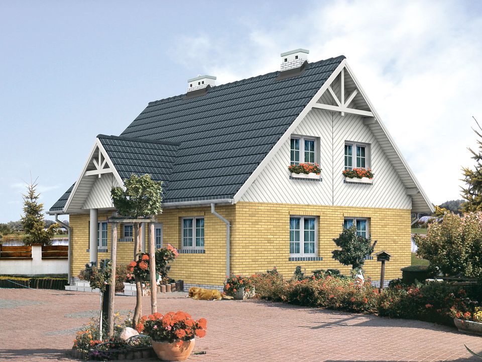 Dach: dachówka, kąt nachylenia 45°. Stropy: żelbetowe, wylewane. Ściany: 3-warstwowe - pustak ceramiczny. Ogrzewanie: gazowe.