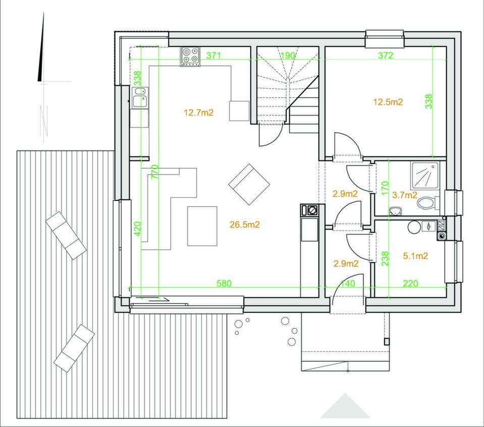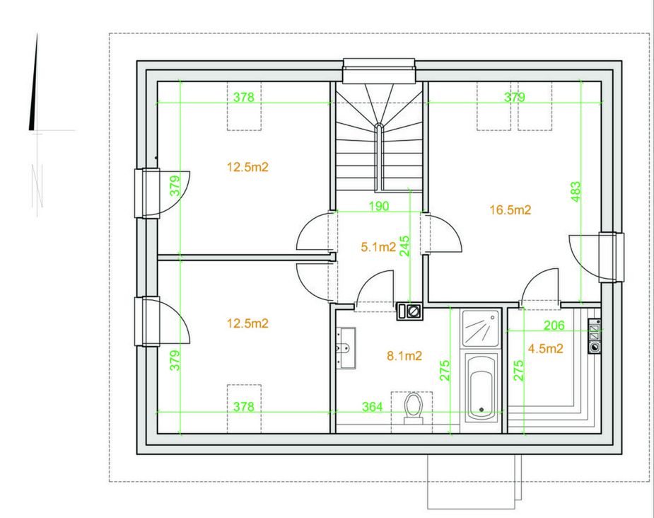 Ogrzewanie: kocioł gazowy / elektryczne. Fundament: płyta fundamentowa 25cm + 15xps + 10cm eps lub ławy fundamentowe. Ściany: beton komórkowy Termalica 24cm + eps 20cm. Dach: drewniany + 40cm izolacji. c.w.u.: kocioł gazowy / elektryczne. Wentylacja: mechaniczna z reku.