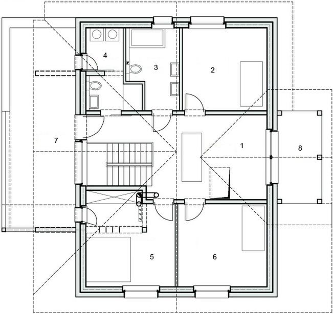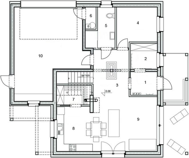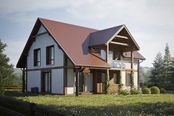 Graficzne opracowanie rzutów poglądowych widocznych na karcie projektu zostało wykonane przez Extradom.pl. Prezentowane przez Extradom.pl wizualizacje wykonane zostały przez autora projektu i należy poczytywać je jedynie za przykład i propozycję wykończenia, wizję architektoniczną autora projektu. Ostateczne wykończenie budynku może nastąpić na wiele sposobów. Szczegółowe rozwiązania zastosowane w oferowanej dokumentacji - w tym również ilość, lokalizacje i wygląd okien, drzwi, kominów - mogą w niewielkim stopniu różnić się od prezentowanej wizualizacji budynku.