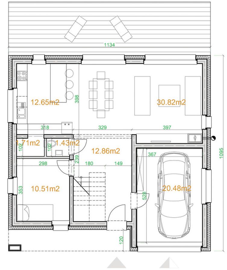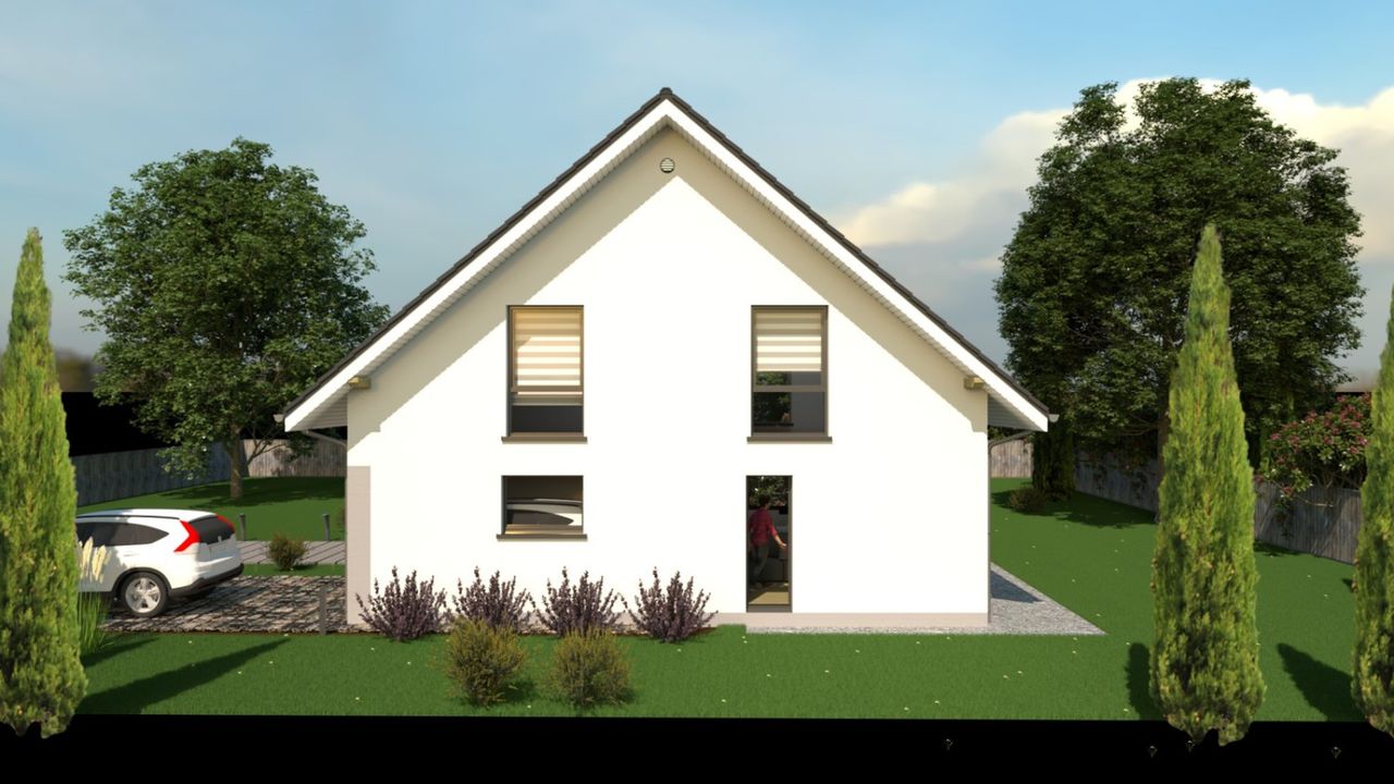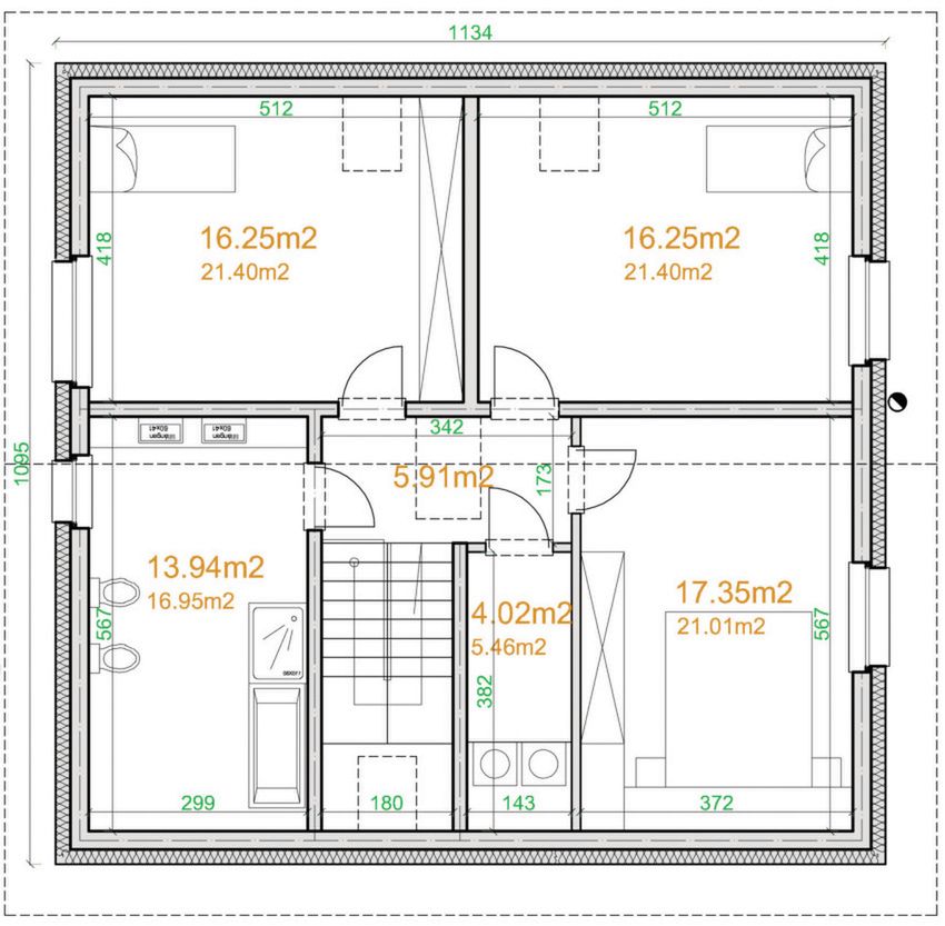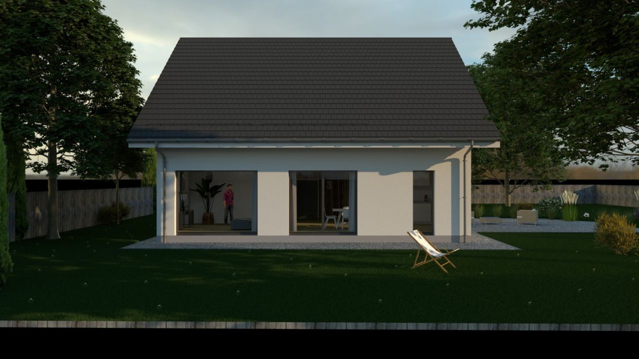 Graficzne opracowanie rzutów poglądowych widocznych na karcie projektu zostało wykonane przez Extradom.pl. Prezentowane przez Extradom.pl wizualizacje wykonane zostały przez autora projektu i należy poczytywać je jedynie za przykład i propozycję wykończenia, wizję architektoniczną autora projektu. Ostateczne wykończenie budynku może nastąpić na wiele sposobów. Szczegółowe rozwiązania zastosowane w oferowanej dokumentacji - w tym również ilość, lokalizacje i wygląd okien, drzwi, kominów - mogą w niewielkim stopniu różnić się od prezentowanej wizualizacji budynku.
