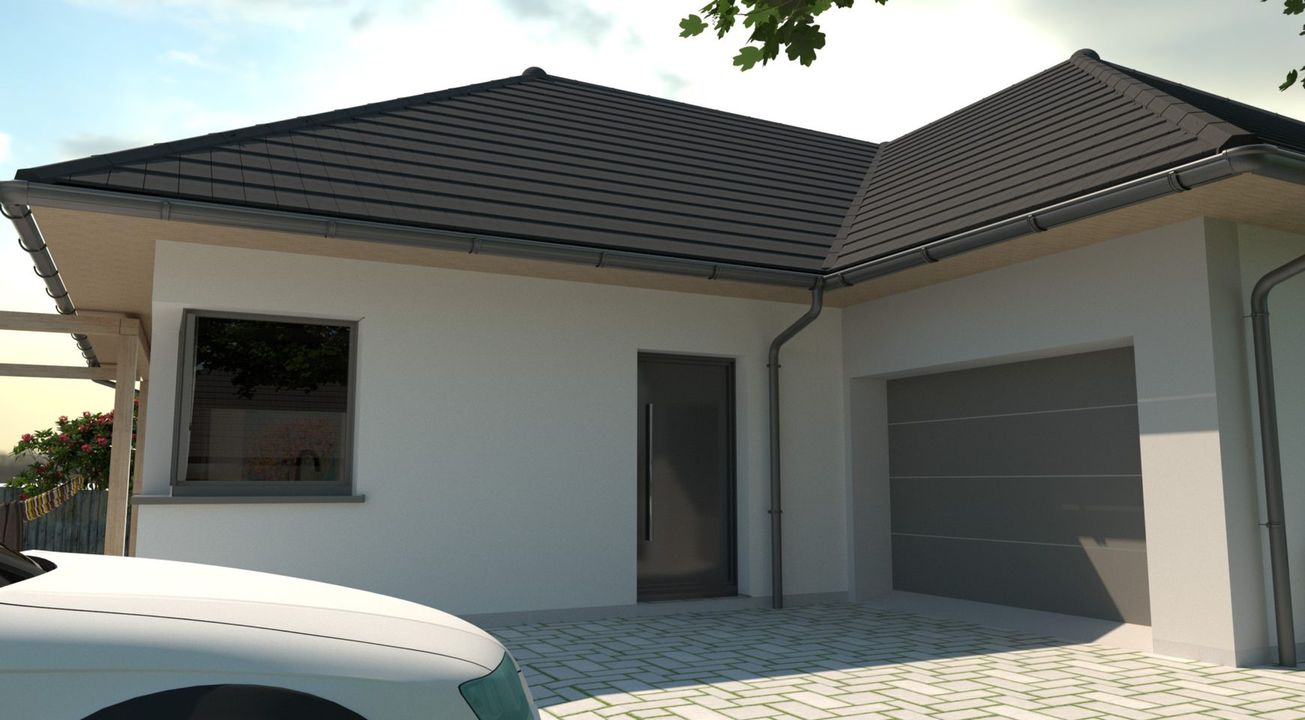 Graficzne opracowanie rzutów poglądowych widocznych na karcie projektu zostało wykonane przez Extradom.pl. Prezentowane przez Extradom.pl wizualizacje wykonane zostały przez autora projektu i należy poczytywać je jedynie za przykład i propozycję wykończenia, wizję architektoniczną autora projektu. Ostateczne wykończenie budynku może nastąpić na wiele sposobów. Szczegółowe rozwiązania zastosowane w oferowanej dokumentacji - w tym również ilość, lokalizacje i wygląd okien, drzwi, kominów - mogą w niewielkim stopniu różnić się od prezentowanej wizualizacji budynku.