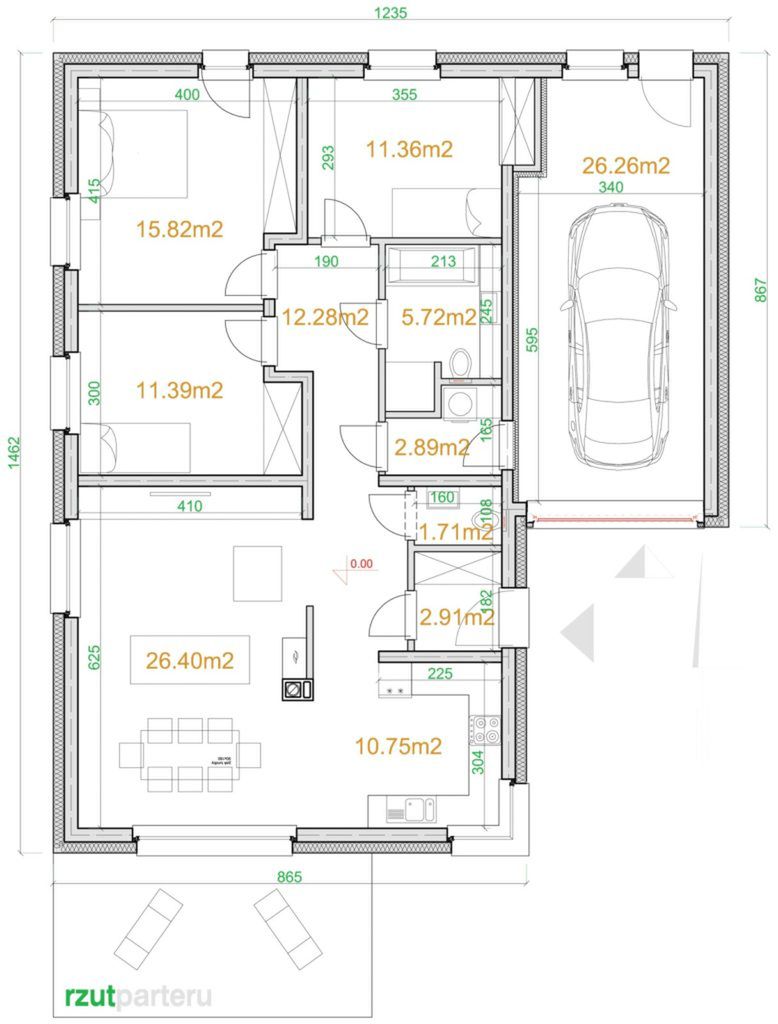 Ogrzewanie: kocioł gazowy / elektryczne/pompa ciepła. Fundament: płyta fundamentowa 25cm + 20xps + 10cm eps lub ławy fundamentowe. Ściany: beton komórkowy Termalica 24cm + eps 20cm. Dach: drewniany + 20cm izolacji na stropie żelbetowym. c.w.u.: kocioł gazowy / elektryczne / pompa ciepła. Wentylacja: mechaniczna z reku.
