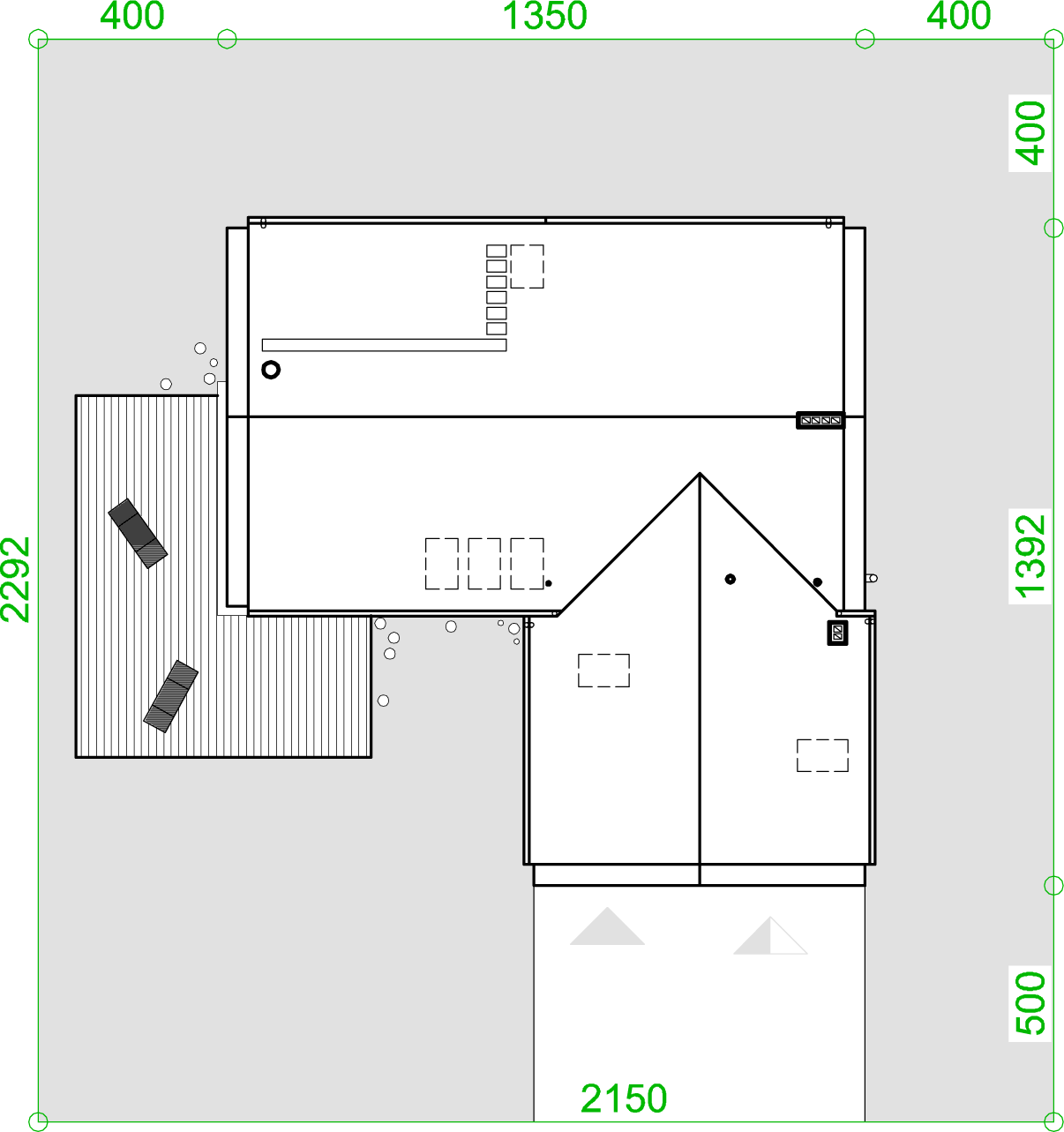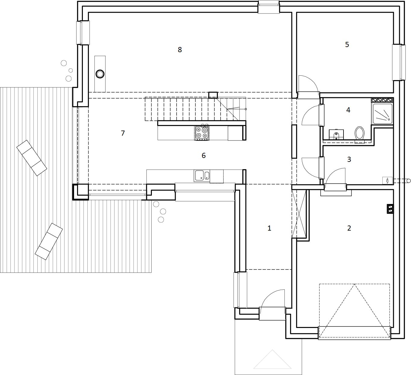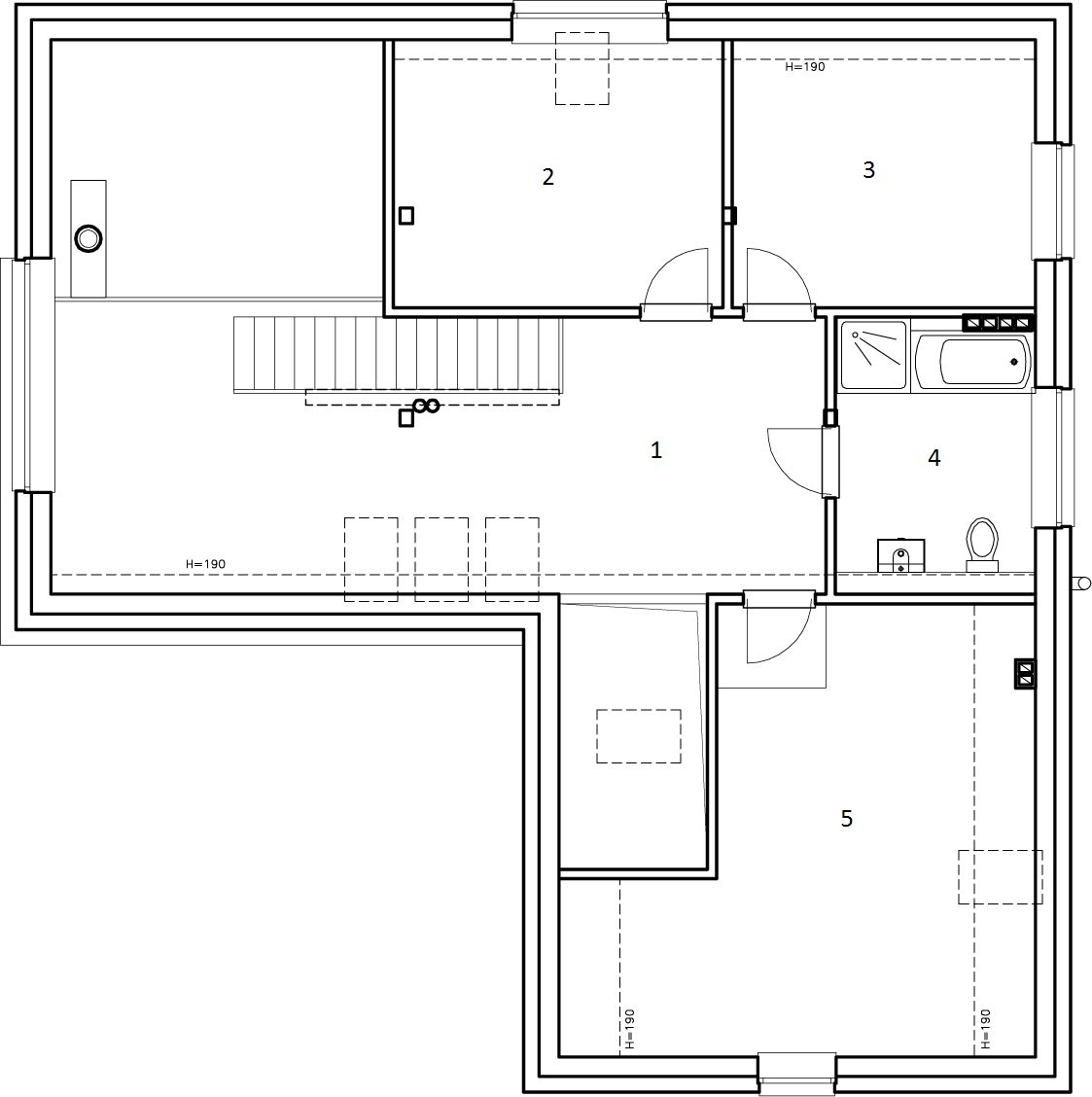 Ogrzewanie: kocioł gazowy / elektryczne. Fundament: płyta fundamentowa 25cm + 15xps + 10cm eps lub ławy fundamentowe. Ściany: beton komórkowy Termalica 24cm + eps 20cm. Dach: drewniany + 40cm izolacji. c.w.u.: kocioł gazowy / elektryczne. Wentylacja: mechaniczna z reku.