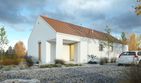 Graficzne opracowanie rzutów poglądowych widocznych na karcie projektu zostało wykonane przez Extradom.pl. Prezentowane przez Extradom.pl wizualizacje wykonane zostały przez autora projektu i należy poczytywać je jedynie za przykład i propozycję wykończenia, wizję architektoniczną autora projektu. Ostateczne wykończenie budynku może nastąpić na wiele sposobów. Szczegółowe rozwiązania zastosowane w oferowanej dokumentacji - w tym również ilość, lokalizacje i wygląd okien, drzwi, kominów - mogą w niewielkim stopniu różnić się od prezentowanej wizualizacji budynku.