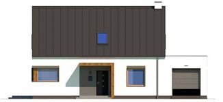 Graficzne opracowanie rzutów poglądowych widocznych na karcie projektu zostało wykonane przez Extradom.pl. Prezentowane przez Extradom.pl wizualizacje wykonane zostały przez autora projektu i należy poczytywać je jedynie za przykład i propozycję wykończenia, wizję architektoniczną autora projektu. Ostateczne wykończenie budynku może nastąpić na wiele sposobów. Szczegółowe rozwiązania zastosowane w oferowanej dokumentacji - w tym również ilość, lokalizacje i wygląd okien, drzwi, kominów - mogą w niewielkim stopniu różnić się od prezentowanej wizualizacji budynku.