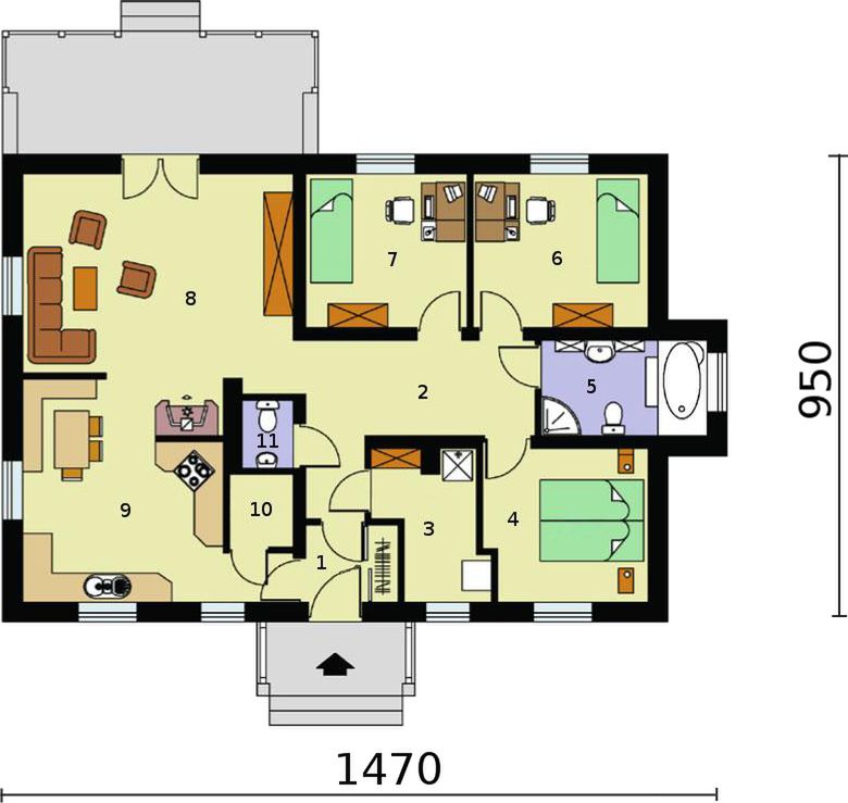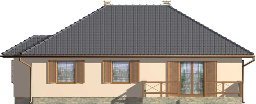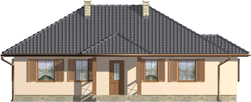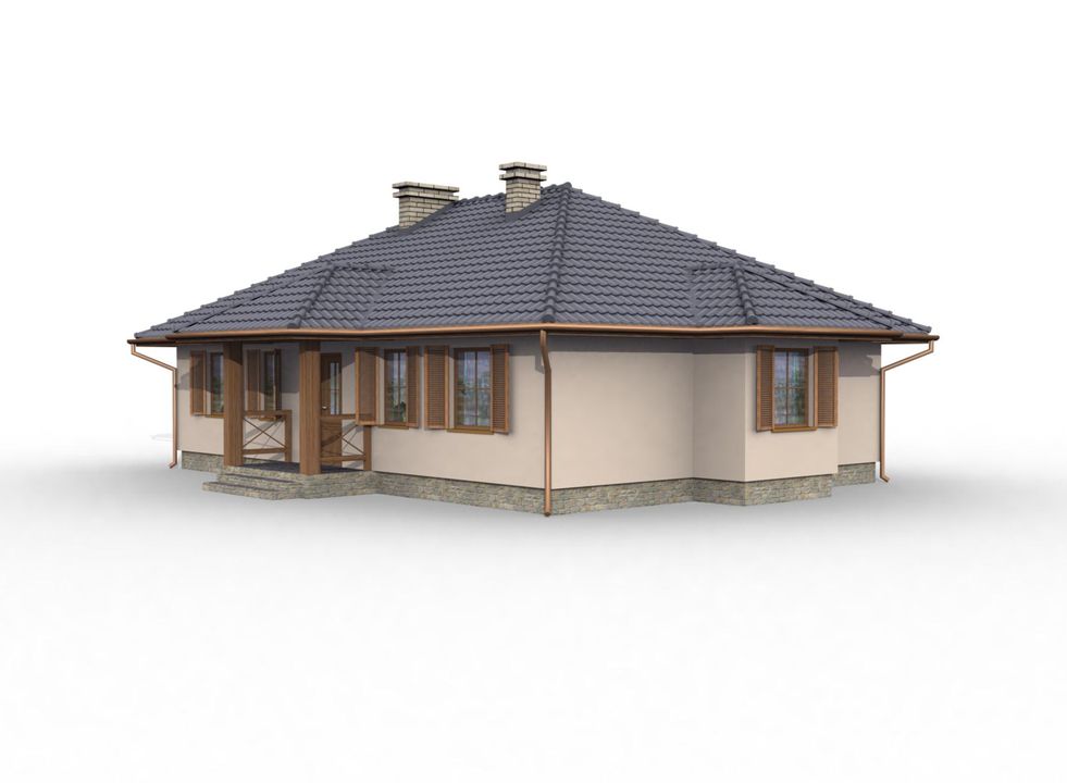 Graficzne opracowanie rzutów poglądowych widocznych na karcie projektu zostało wykonane przez Extradom.pl. Prezentowane przez Extradom.pl wizualizacje wykonane zostały przez autora projektu i należy poczytywać je jedynie za przykład i propozycję wykończenia, wizję architektoniczną autora projektu. Ostateczne wykończenie budynku może nastąpić na wiele sposobów. Szczegółowe rozwiązania zastosowane w oferowanej dokumentacji - w tym również ilość, lokalizacje i wygląd okien, drzwi, kominów - mogą w niewielkim stopniu różnić się od prezentowanej wizualizacji budynku.