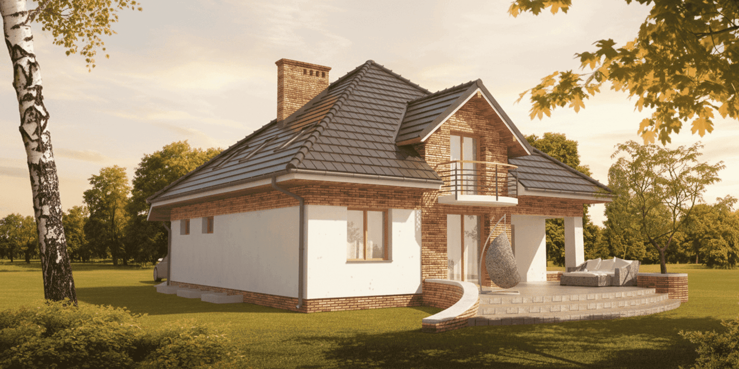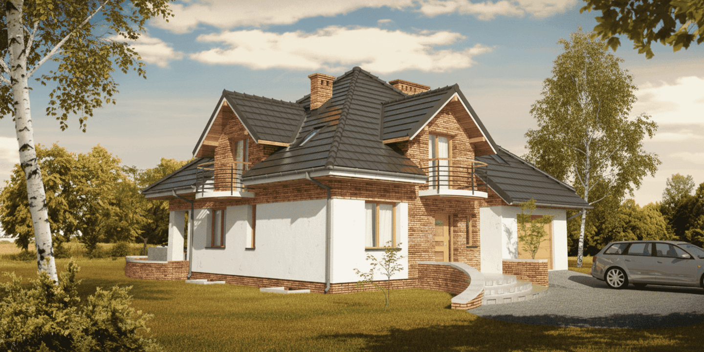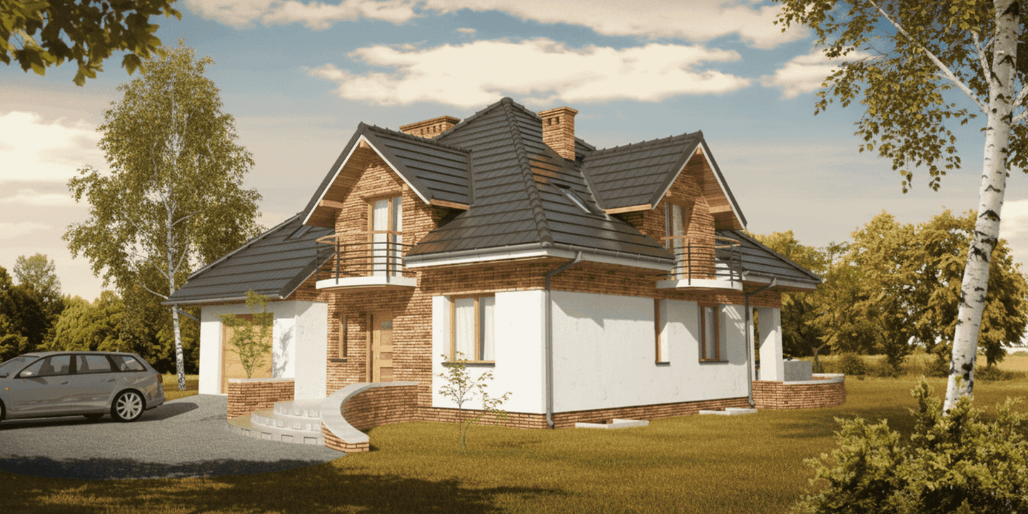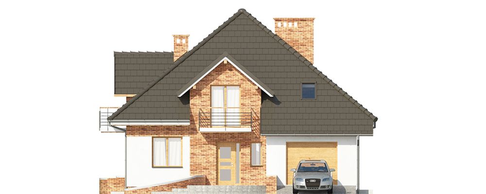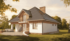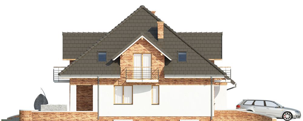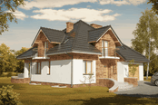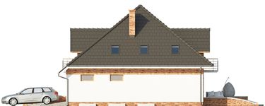 Graficzne opracowanie rzutów poglądowych widocznych na karcie projektu zostało wykonane przez Extradom.pl. Prezentowane przez Extradom.pl wizualizacje wykonane zostały przez autora projektu i należy poczytywać je jedynie za przykład i propozycję wykończenia, wizję architektoniczną autora projektu. Ostateczne wykończenie budynku może nastąpić na wiele sposobów. Szczegółowe rozwiązania zastosowane w oferowanej dokumentacji - w tym również ilość, lokalizacje i wygląd okien, drzwi, kominów - mogą w niewielkim stopniu różnić się od prezentowanej wizualizacji budynku.