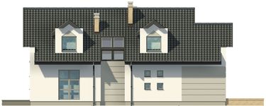 Graficzne opracowanie rzutów poglądowych widocznych na karcie projektu zostało wykonane przez Extradom.pl. Prezentowane przez Extradom.pl wizualizacje wykonane zostały przez autora projektu i należy poczytywać je jedynie za przykład i propozycję wykończenia, wizję architektoniczną autora projektu. Ostateczne wykończenie budynku może nastąpić na wiele sposobów. Szczegółowe rozwiązania zastosowane w oferowanej dokumentacji - w tym również ilość, lokalizacje i wygląd okien, drzwi, kominów - mogą w niewielkim stopniu różnić się od prezentowanej wizualizacji budynku.