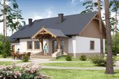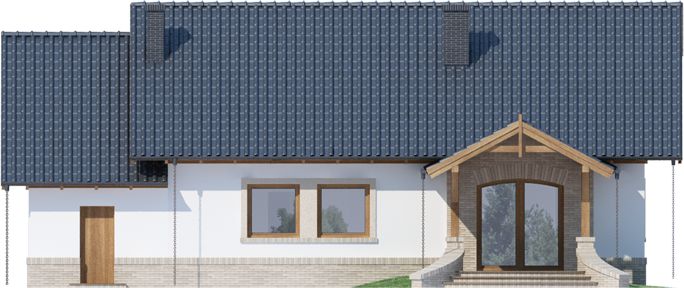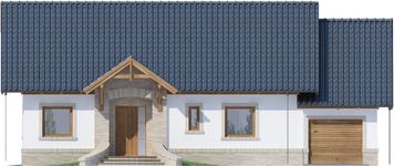 Graficzne opracowanie rzutów poglądowych widocznych na karcie projektu zostało wykonane przez Extradom.pl. Prezentowane przez Extradom.pl wizualizacje wykonane zostały przez autora projektu i należy poczytywać je jedynie za przykład i propozycję wykończenia, wizję architektoniczną autora projektu. Ostateczne wykończenie budynku może nastąpić na wiele sposobów. Szczegółowe rozwiązania zastosowane w oferowanej dokumentacji - w tym również ilość, lokalizacje i wygląd okien, drzwi, kominów - mogą w niewielkim stopniu różnić się od prezentowanej wizualizacji budynku.