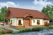 Fundamenty: bezpośrednie, na ławach i stopach fundamentowych. Ściany zewnętrzne: bloczki z bet. komórkowego - 24 cm + styropian TERMO ORGANIKA typ Fasada 20 cm. Ściany wewnętrzne: bloczki z bet. komórkowego - 24 cm (działowe - 12 cm). Strop: belki drewniane (ocieplenie ISOVER Super Mata). Elewacje: tynk - System firmy TERMO ORGANIKA, płytki klinkierowe, deska elewacyjna. Pokrycie dachu: dachówka cementowa lub blachodachówka. Konstrukcja dachu: drewniana o układzie konstrukcyjnym płatwiowo-krokwiowym. Schody wewnętrzne: wyłaz na poddasze. Ogrzewanie: kocioł gazowy kondensacyjny lub kocioł na biomasę (pelety) dodatkowe źródło ciepła - kominek z płaszczem wodnym. Projekt jest zgodny z wymaganiami WT2021, a konstrukcja była obliczana zgodnie z eurokodami.